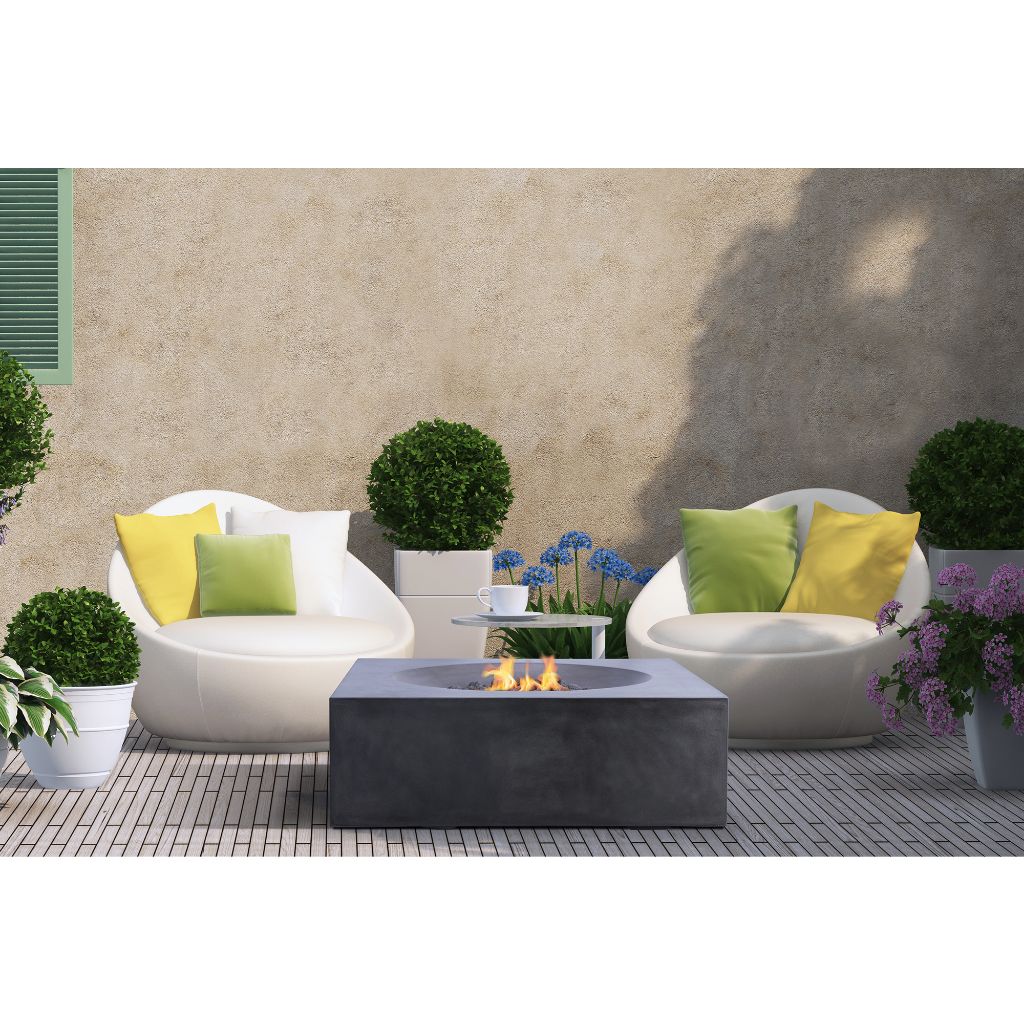 Featuring a contemporary square design made from high-performance Glass Fiber Reinforced Concrete, this unit combines style and quality. GFRC is lighter compared to materials like marble and stone but provides the same level of durability while giving a natural handcrafted look. On the other hand, due to the glass fibers mixed in the GFRC help to reinforce the concrete, it's stronger than MGO (Magnesium Oxide) and without paint in GFRC makes it more colorfast to withstand the outdoor elements. Plus, with 2 coats of clear sealers applied and the matte finish, Tao fire table is perfect for your outdoor spaces.