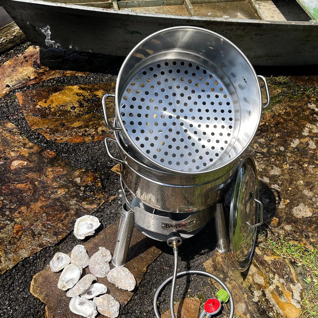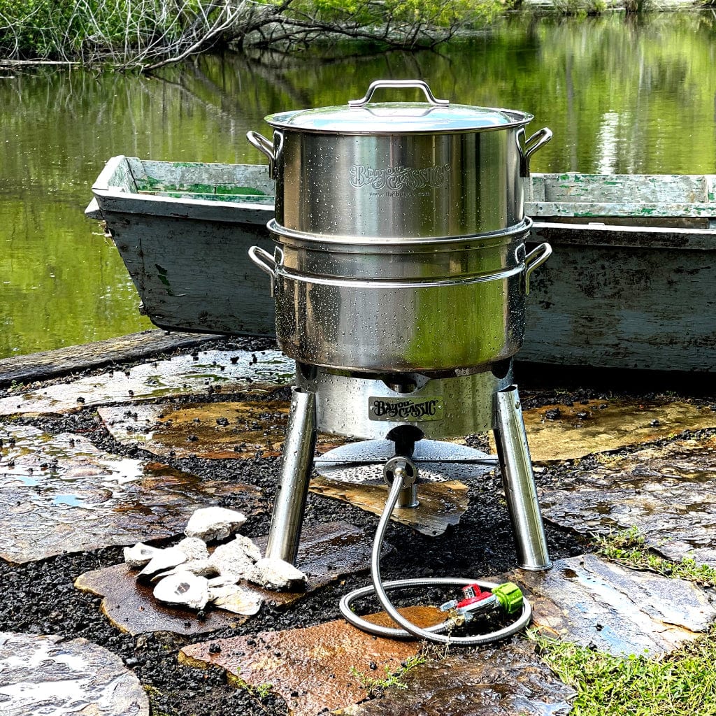 Our versatile seafood steamer entertains a crowd - steaming crabs, lobster, shrimp, clams, and vegetables. Bayou Classic brings the essence of coastal bayou living to backyards everywhere.