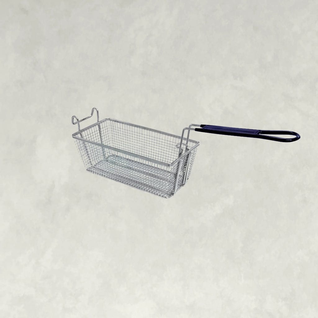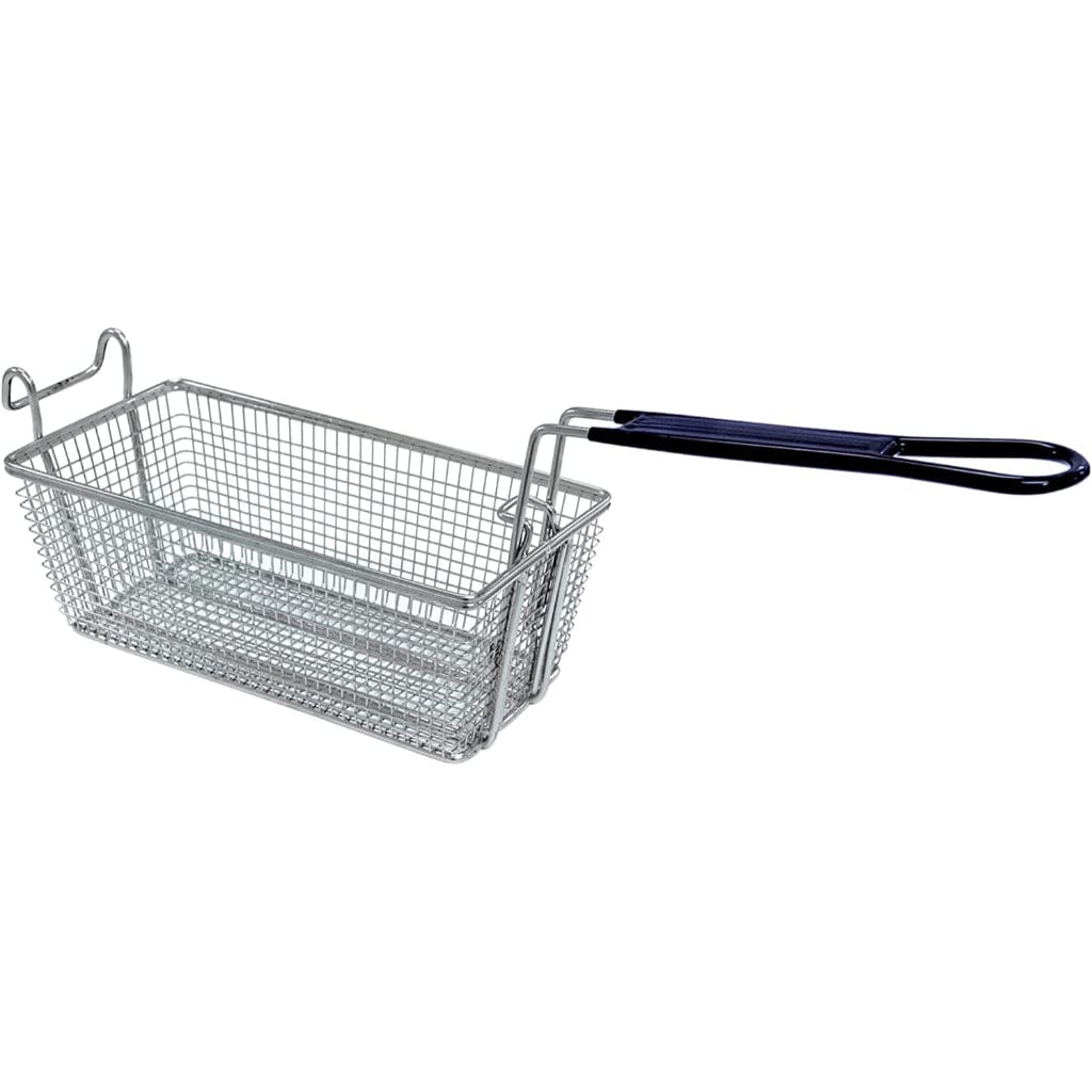 Stainless Accessory Basket fits the 9-gal Bayou® Fryer. The wire-mesh basket rapidly drains cooking oil away from fried fish, shrimp, chicken, onion rings, hushpuppies, and fries. Cool touch handle keeps chef safely away from hot cooking oil.