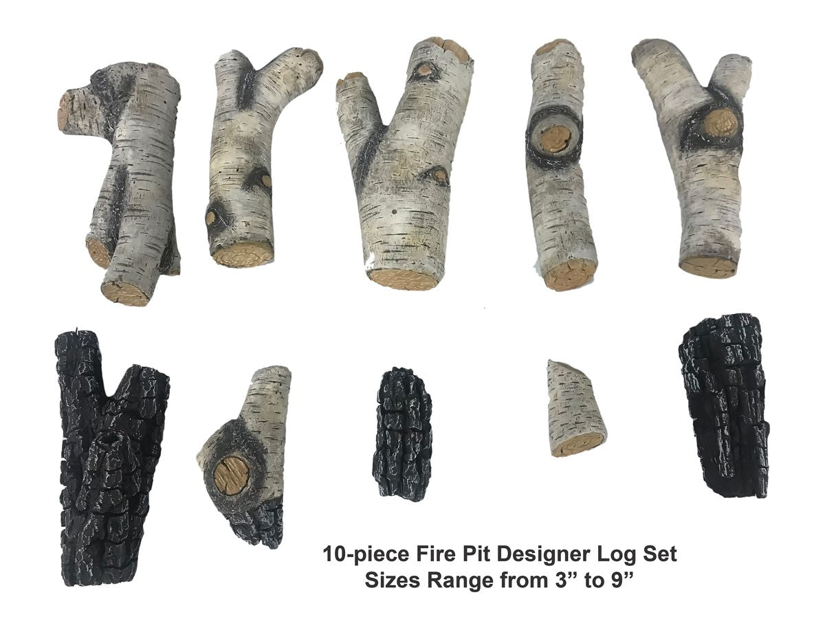 Hand-painted in the USA, our 10-piece Fire Pit log adds realism to your gas fire table, gas fire bowl or gas fire pit. Our full-time design studio teams create the most innovative and complicated artistic products for your fireplace or fire-pit. Crafted to withstand high temperatures of 850F and radiate heat even after the burner has been turned off. The craftsmanship of this designer log set captures the realism, texture and subtle nuances found in nature.