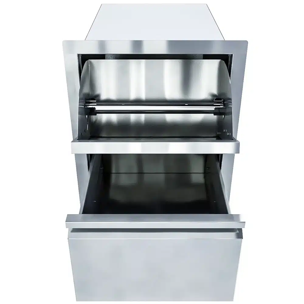 Aruba Series 16 Inch Paper Towel Single Drawer Combo compliments most Side Burner or Cleanup Zone locations because of its unique versability with a Full-Sized Paper Towel Holder and Single Extra-Large Drawer. The Paper Towel Single Drawer Combo is sized to perfectly blend with all other Aruba Series with matching Height for a Designer Appeal.