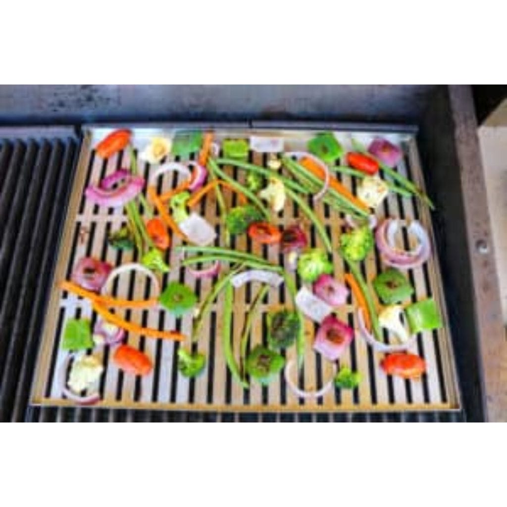 • This thinly-slotted tray allows you to cook vegetables, shellfish, and other small food items that would otherwise fall through the larger openings of our other accessories or grill grates.