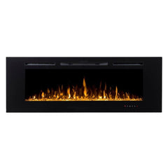 Challenger Wall Mount Recessed Linear Electric Fireplace offers an affordable option for a contemporary attraction while providing additional heating for your room. Its sleek and thin design makes Challenger linear wall mount fireplace a good choice for any space in the office or home, including the dining room or bedroom. Enjoy realistic adjustable flames created by the LED technology shown in 10 vibrant flame color options: royal blue, orange, emerald, lavender, magenta, aqua, gold, red, green, and multicolored. Beautiful Clear glacier glass ember bed enhances flames in the same color options for a truly pleasant artistic display.