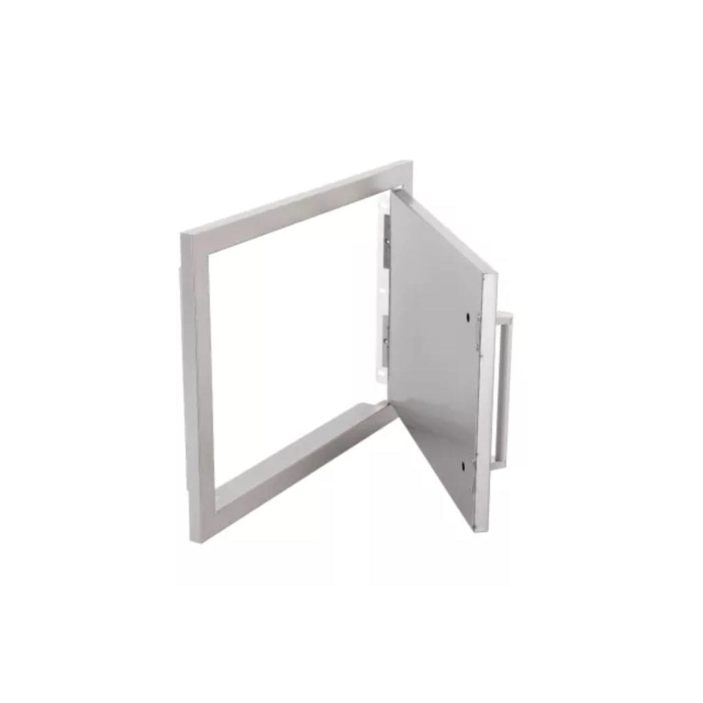 This 20.25 x 16.5 vertical door is constructed from 304 stainless steel, and has masonry edges, heavy-duty hinges & handle. Features: Type: Single Horizontal Door. Constructed of Stainless Steel. Opens Towards the Right Hand.