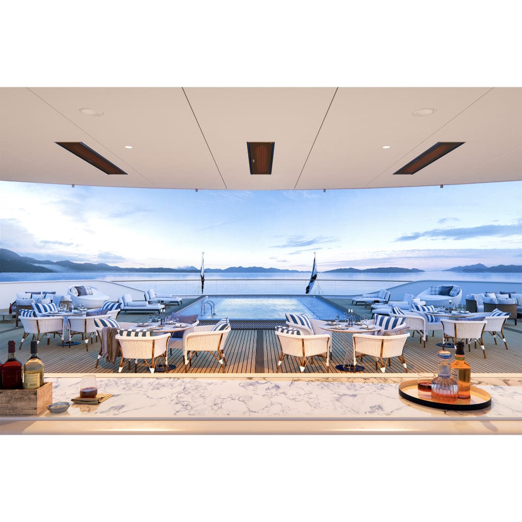 Our high-quality outdoor heaters and accessories have been developed & engineered specifically for marine applications and coastal environments and are the only outdoor heaters on the market that are fully Lloyd’s register certified. Made of high-quality, AISI316 stainless-steel, Bromic Platinum Smart-Heat™ Electric Marine heaters were specifically engineered to provide superior resistance to the corrosive elements of coastal and marine environments. With their slim, aesthetic design and wind-resistant, radiant heat output, the Platinum Smart-Heat™ Electric Marine heaters are the ideal solution to enrich the comfort experience of owners of coastal residences and superyachts & guests on cruise ships.