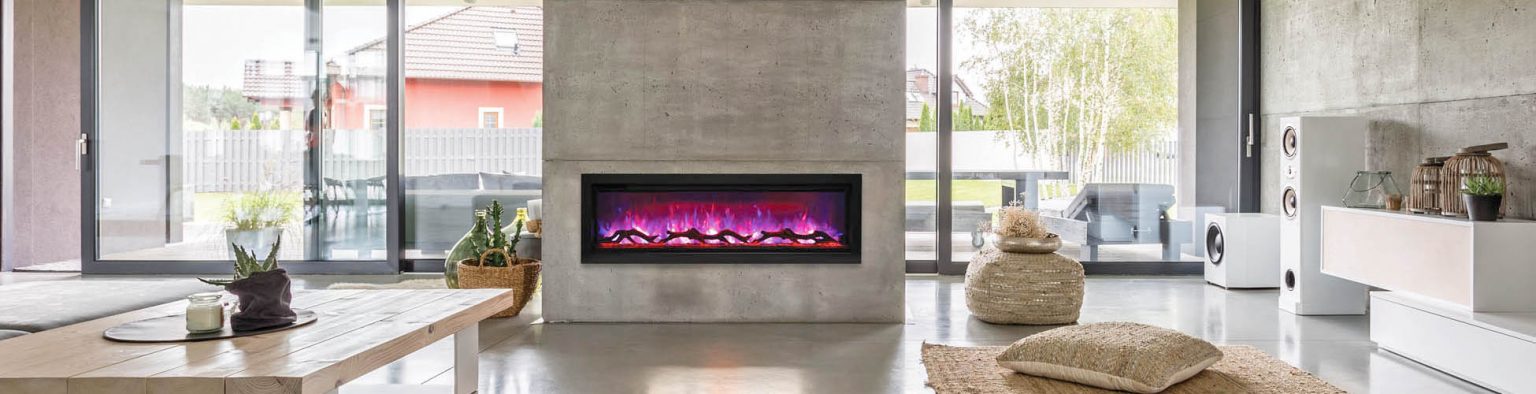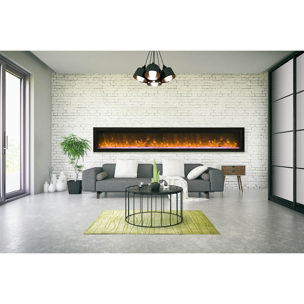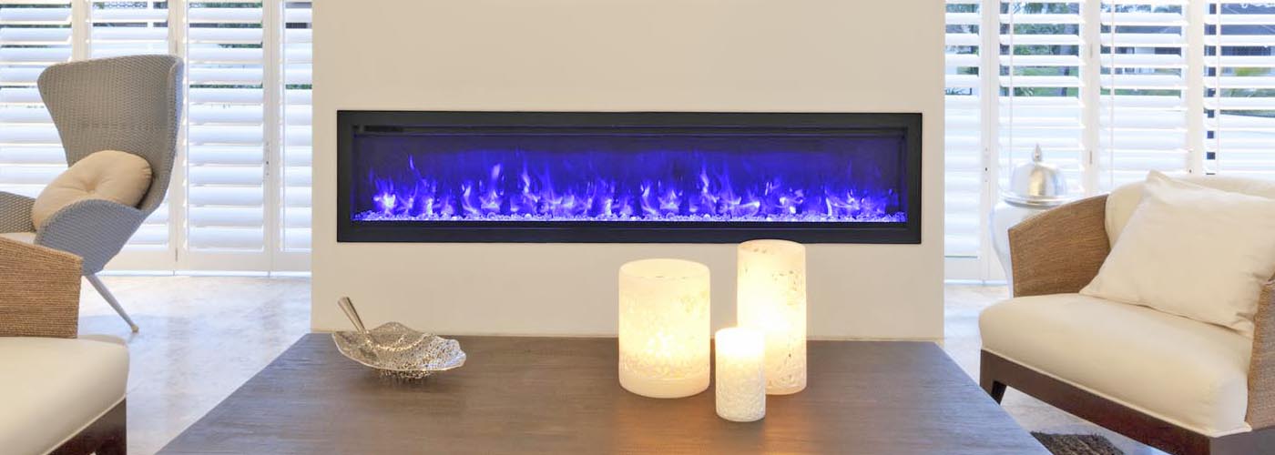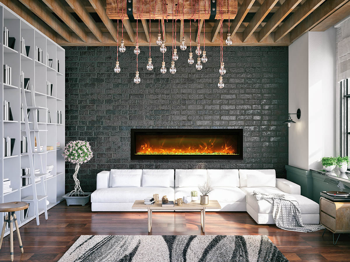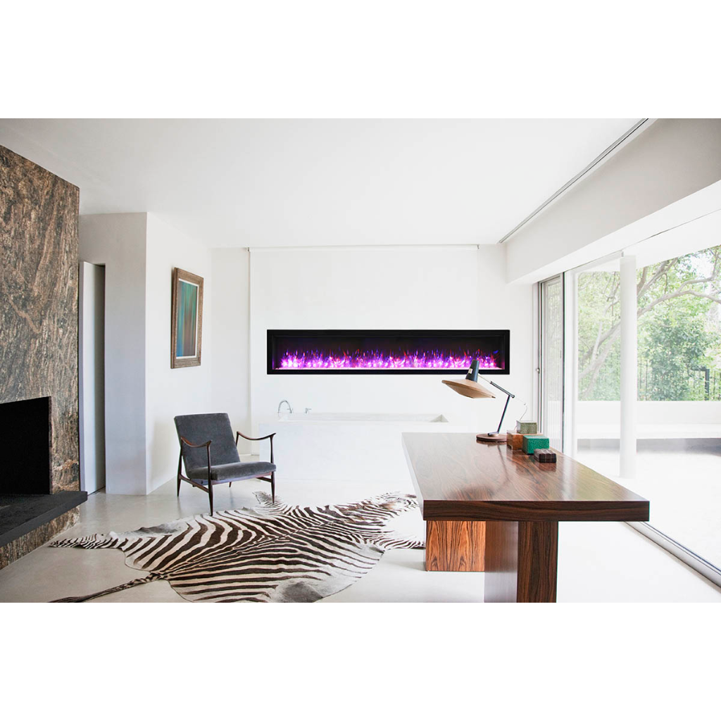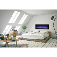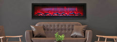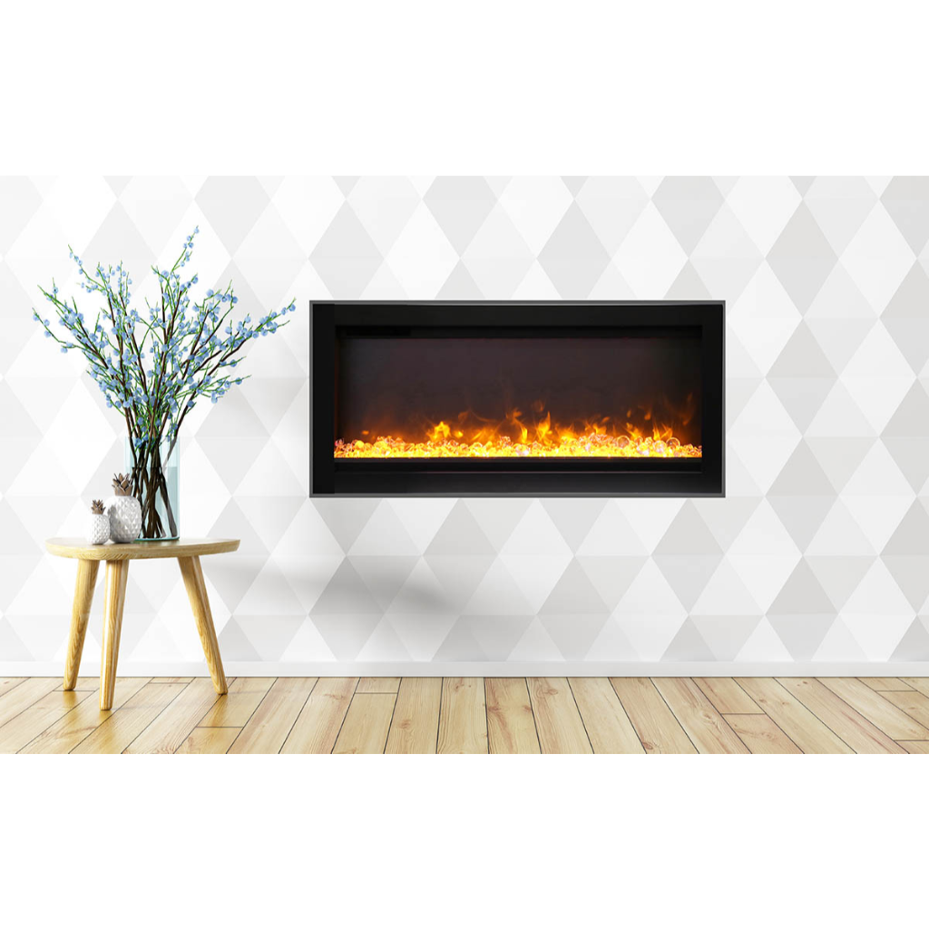 The Remii by Amantii WM-100-B electric fireplace, is a Remii basic fireplace model offering clean, contemporary aesthetics with no visible unsightly heat vents and red glowing heat grills.
