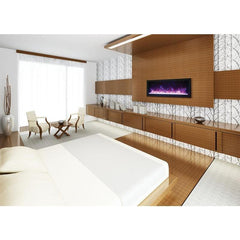 The Remii NEW Extra Slim Electric Fireplace is available in four sizes, so you’ll find a fireplace that is perfect for any space in your home, business or commercial space. Boasting our FIRE & ICE® Flame presentation with three color LED light strips allowing for multi-color flame options. With just a click of the included remote control, choose from blue, rose, violet, yellow or orange colored flames.