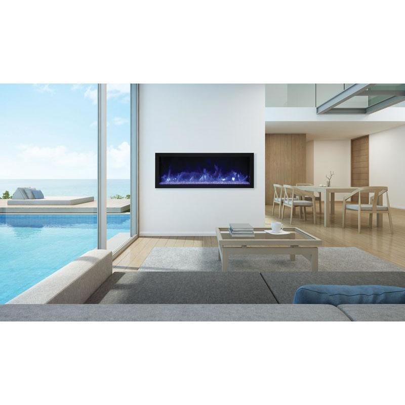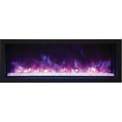 The Extra Slim Remii 102745-XS fireplace comes standard with Canyon Brown and Ocean Blue fireglass media. Additional media options available for purchase.