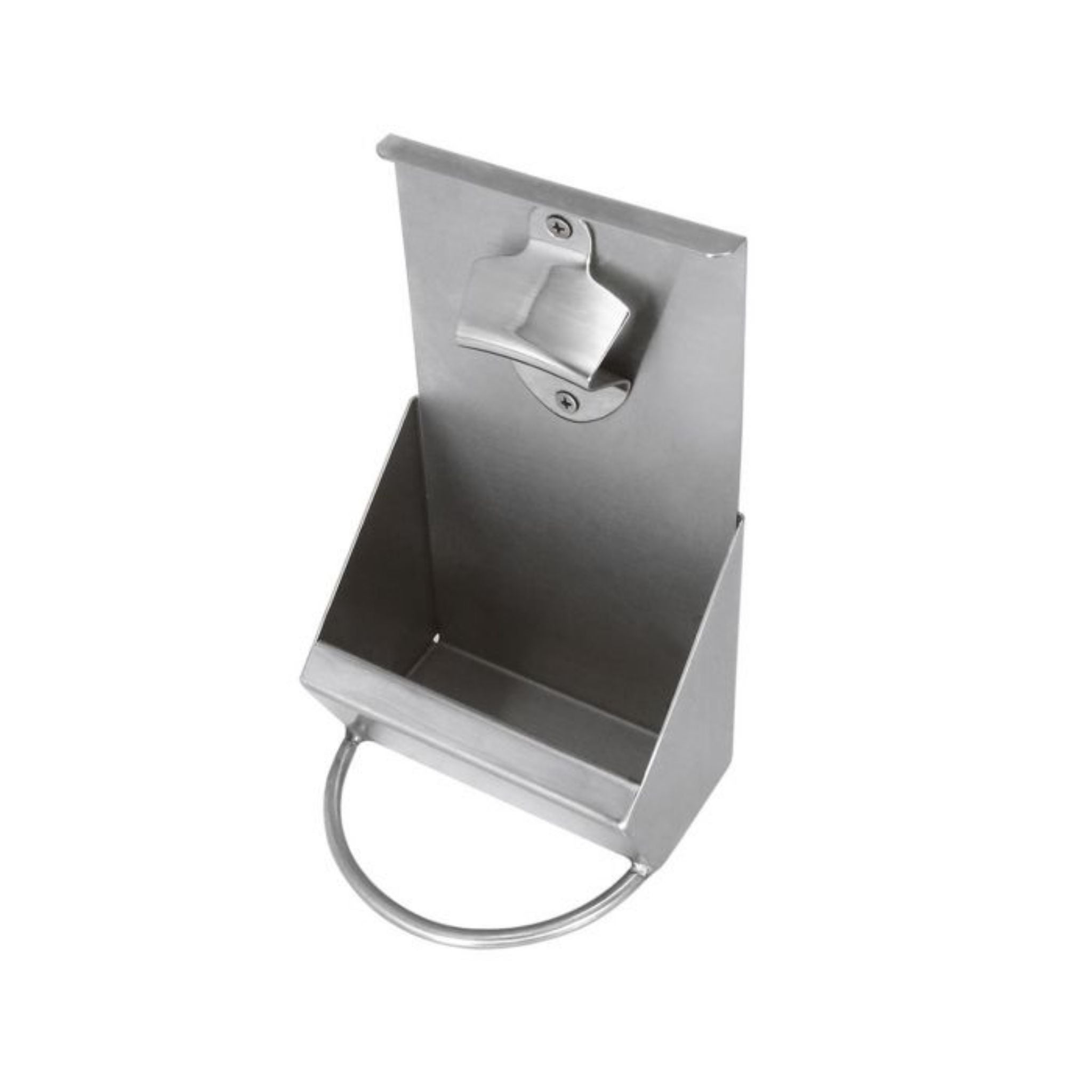 Provides a premium accessory for your outdoor kitchen. This bottle opener is constructed from heavy-duty 304 stainless steel and includes a cap catcher and simple bar for hand towels. It attaches to the Alfresco 30-inch sink (AGBC-30). Upgrade your outdoor kitchen with help from Alfresco!
