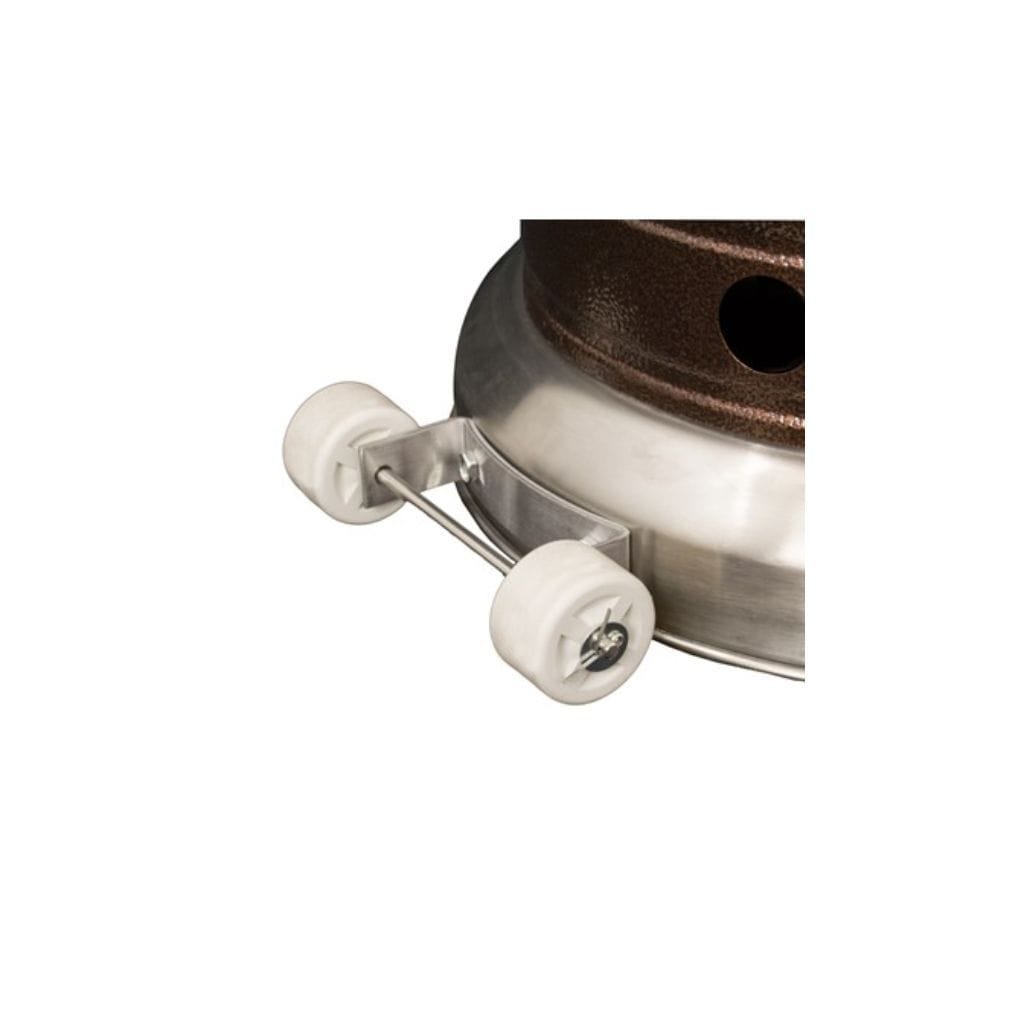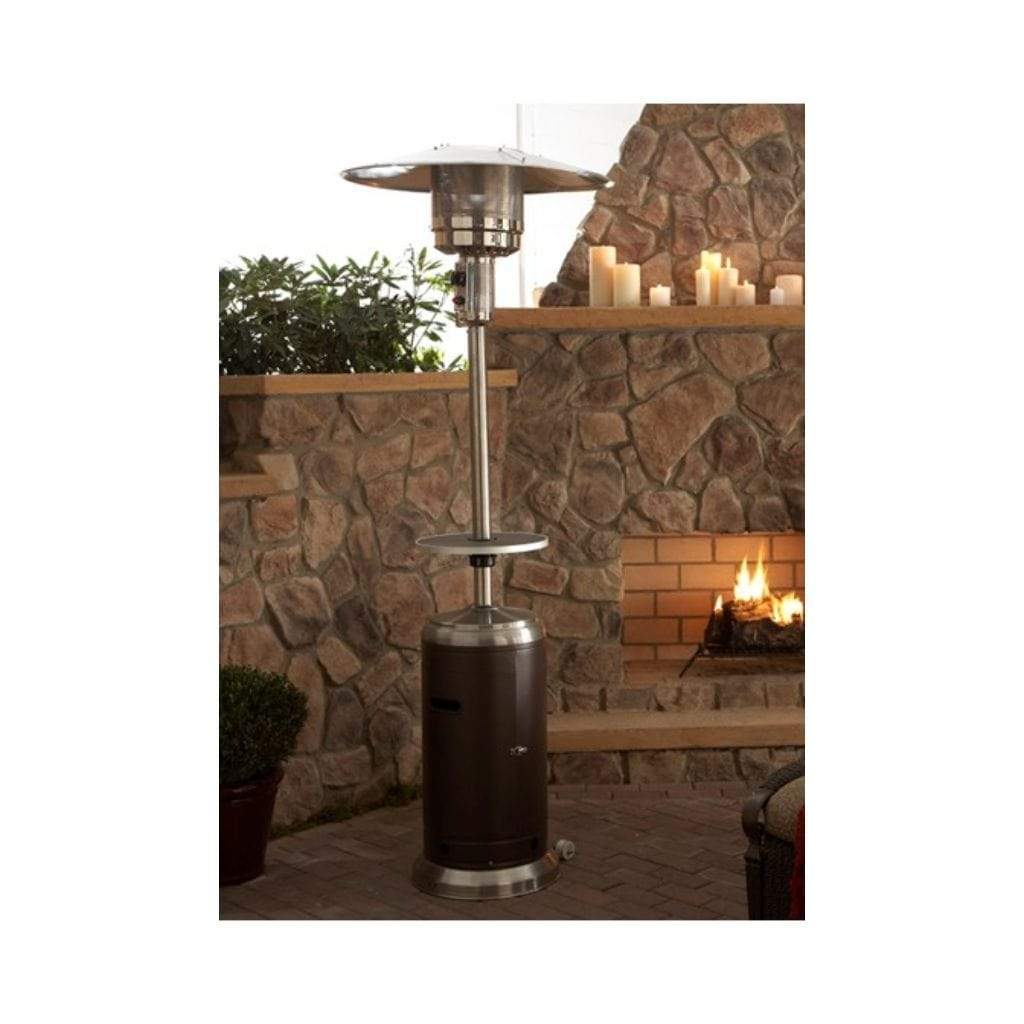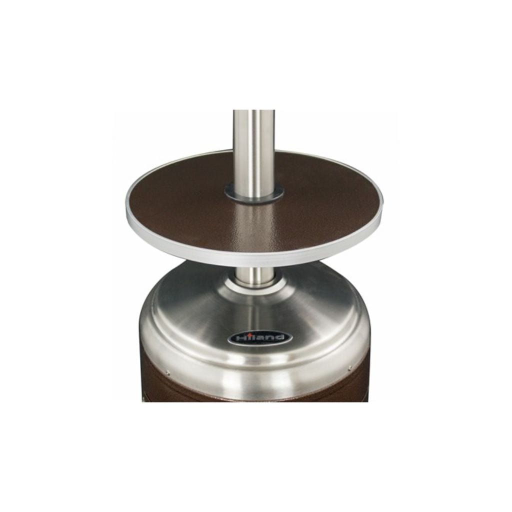 The HLDS01-SSHGT Tall Stainless Steel / Hammered Bronze Patio Heater with Table projects 48,000 BTUs of heat providing warmth while adding ambiance to any outdoor area. Steel construction ensures a durable, weather-resistant, functional unit that would be a great addition to any patio, deck, or outdoor setting. The HLDS01-SSHGT features an emitter/burner unit made of heavy-duty steel, built-in wheels for easy portability/mobility, and an adjustable table that be removed completely. This heater is CSA Approved and includes a burner cover and regulator.