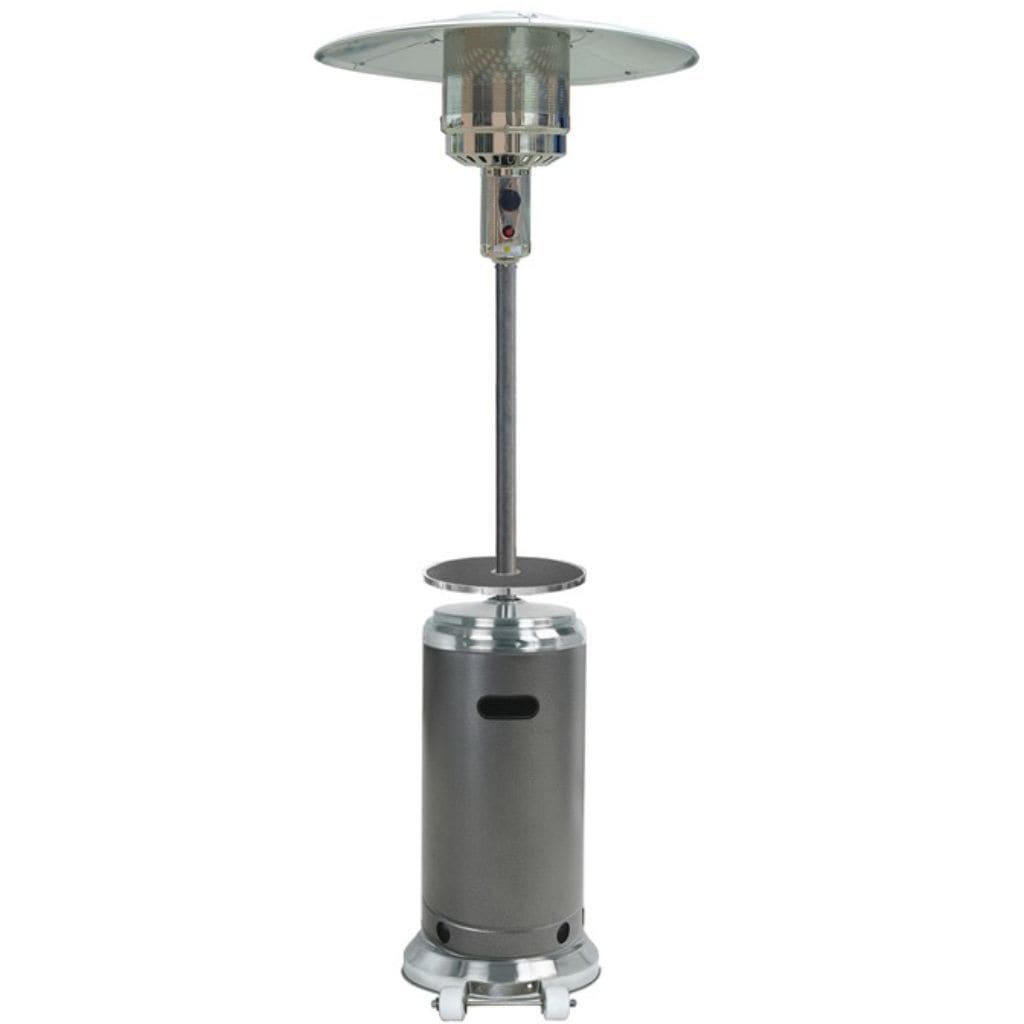 The HLDS01-SSHST Tall Stainless Steel / Hammered Silver Patio Heater with Table projects 48,000 BTU's of heat providing warmth while adding ambiance to any outdoor area. Steel construction ensures a durable, weather-resistant, functional unit that would be a great addition to any patio, deck, or outdoor setting. The HLDS01-SSHST features an emitter/burner unit made of heavy-duty steel, built-in wheels for easy portability/mobility, and an adjustable table that be removed completely. This heater is CSA Approved and includes a burner cover and regulator.