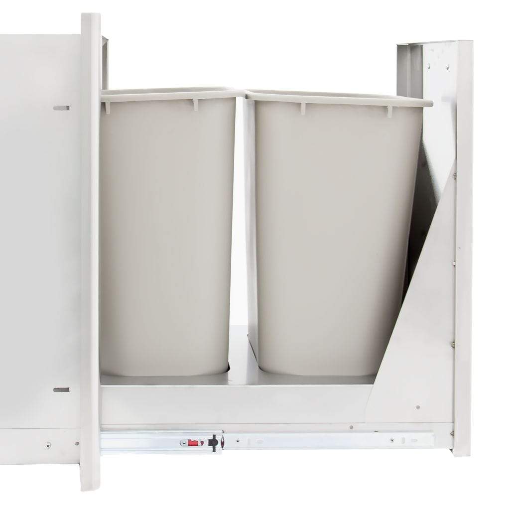 This Blaze roll out trash and recycle drawer features commercial grade 304 stainless steel construction to withstand outdoor elements and a unique, completely rounded bevel design that enhances strength and durability. Conveniently store your trash and recycle bins gaining easy access by pulling the roll out drawer open. This quality storage drawer is accented with a sleek straight handle. Blaze storage drawers are the perfect storage solution for any outdoor kitchen!