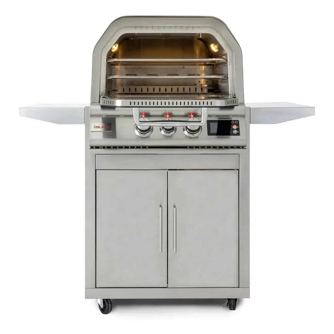 Experience the next level of outdoor cooking with the Blaze Pizza Oven. Far more than your average pizza oven, the Blaze Pizza Oven is a top-of-the-line product destined to make your backyard the destination for deep-dish, flatbread, or any other style of pizza. But the versatility doesn’t stop there — not when your pizza oven can also cook up dishes like a sumptuous rack of lamb, mouth-watering steak, or whatever your heart desires, thanks to a vertical rotisserie rod and double cooking racks. Add two digital meat probes that ensure perfection with each cook, and you’ll see that this powerful (and sleek) outdoor oven can truly do it all.