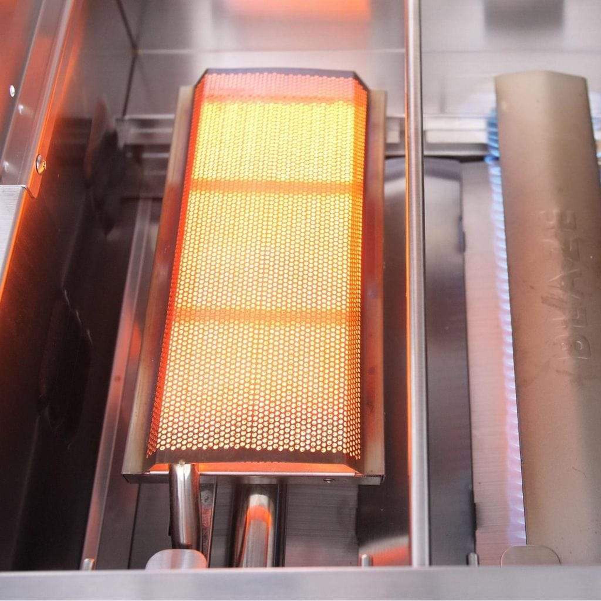 - Infrared searing burners lock in flavorful juices and retain moisture