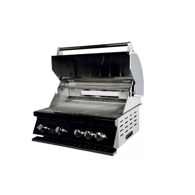 The Bonfire Outdoor Black Series 34" 4-Burner Built-In Grill is crafted from high-grade 304 stainless steel for superior strength and durability. Experience professional 4-burner cooking, with an infrared rear burner providing even heat distribution. Laser-cutting technology ensures a perfect shape every time. Enjoy reliable grilling every time.
