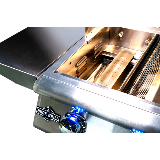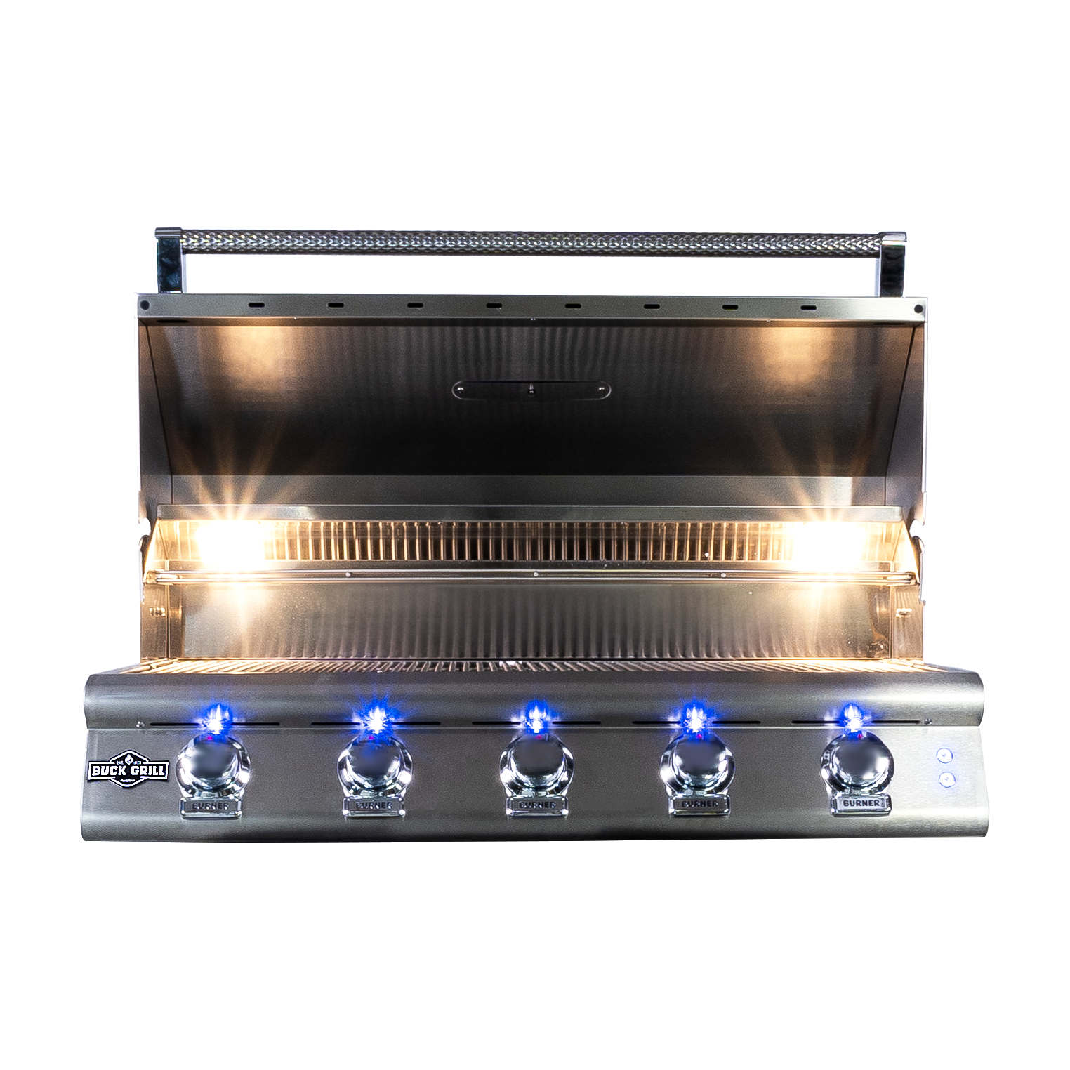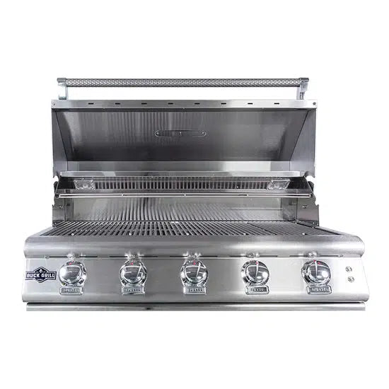 The 40-Inch Buck Grill is the perfect size grill for the entertainer. 70,000 BTUs gives you the power of intense searing heat when you need it. Precision controlled valves brass valves cools the temperature down when you need to cook low and slow. All five cast stainless steel burners feature Flame Thrower igniters that light quickly and efficiently every time. Robust, stainless steel flame tamers evenly distribute the heat and reduce flare-ups. Buck Grills feature stainless steel construction that will last a lifetime. Buck Grill - We Know Fire.