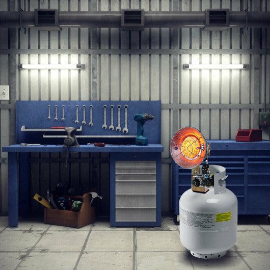 This portable propane tank top heater has a metal dish to help concentrate heat keeping you warm at all times. It is ideal for outdoor activities such as camping hunting fishing or sporting events. You can adjust the heat into 3 different levels to satisfy your various needs. With 15000 BTUs it will heat up quickly and achieve a heating area of 400 sq. ft. The tip-over switch and safety shut-off valve are designed to safely shut down when the heater is tipped over to ensure your safe use. The zinc-plated steel support bracket will enhance the stability when you put it onto the tank. And it's very simple to use and doesn't require any electricity or assembly. Get one propane tank-top heater to warm your winter! Don't hesitate to buy it!