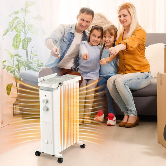 1500W Portable Oil Filled Radiator Heater with 3 Heat Settings - White