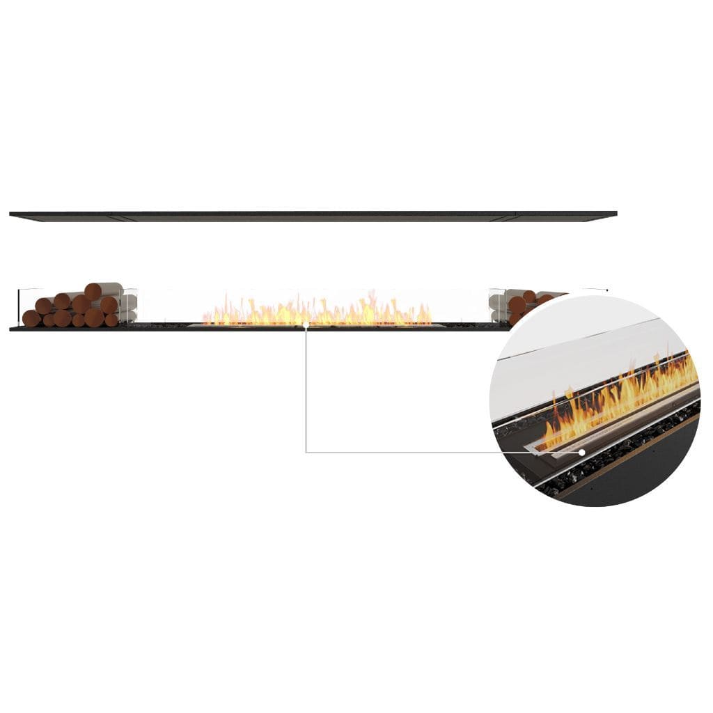Available in a timeless black finish, Flex Fireboxes come with stainless steel burners and black glass charcoal.