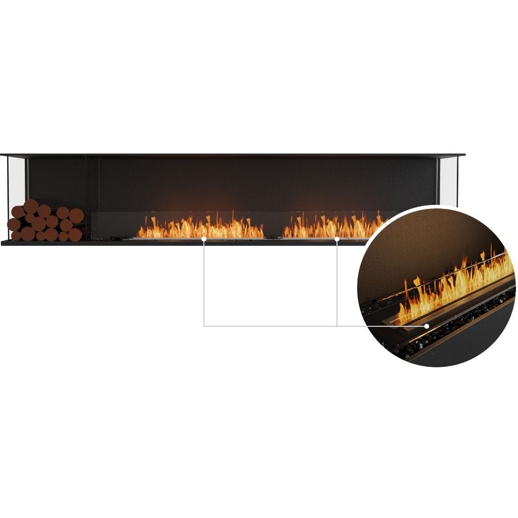 Available in a timeless black finish, Flex Fireboxes come with stainless steel burners and black glass charcoal.