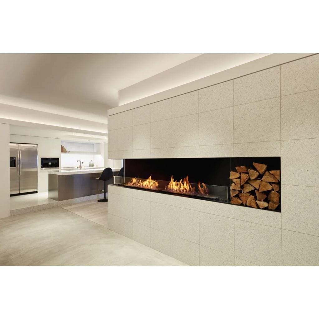 Designed for single room installation, the Left Corner Fireplace Insert features two open sides. The transparent glass on the left corner enables the flame to be viewed from the front and the left corner, providing interior designers, homeowners, architects and builders with the freedom to customize their fire solution to suit a floor plan.