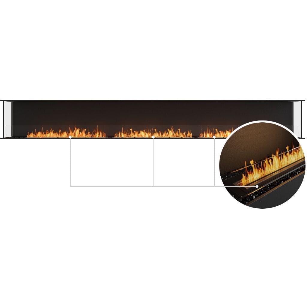 Available in a timeless black finish, Flex Fireboxes come with stainless steel burners and black glass charcoal.