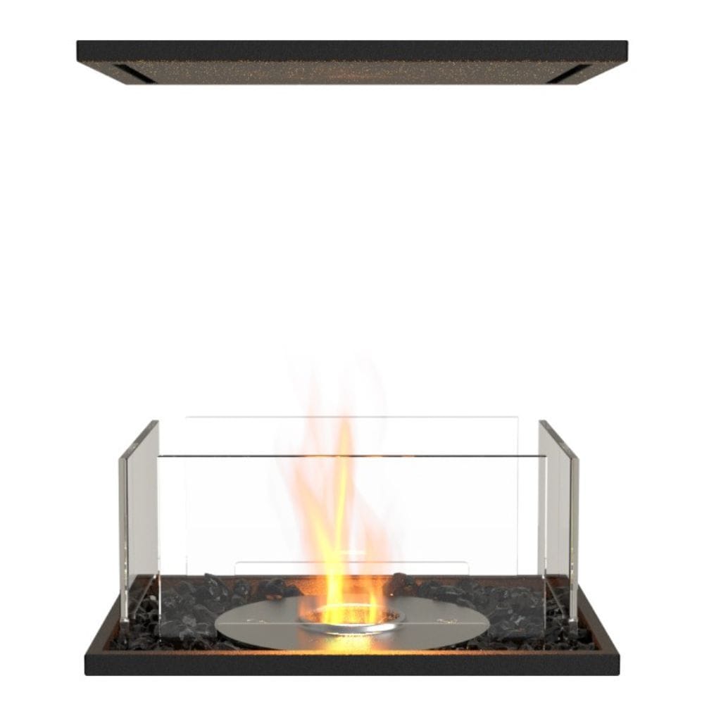 *Note: "e-NRG Bioethanol Fuel for the burner is sold separately. Glass windscreen included. Black Fireboxes come with Stainless Steel Burners. Model comes with Black Glass Charcoal."