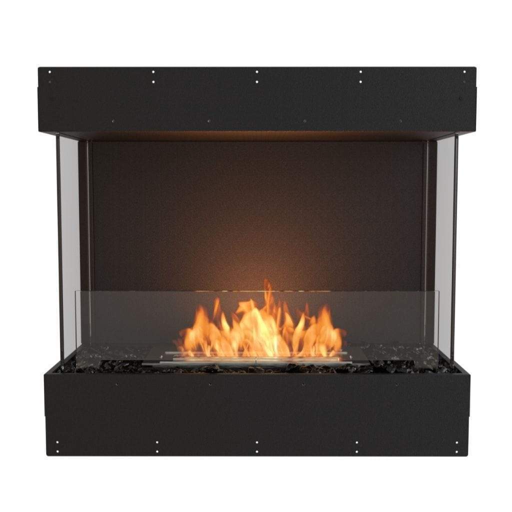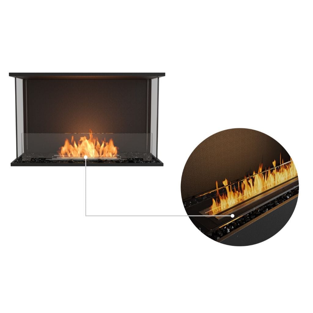 Available in a timeless black finish, Flex Fireboxes come with stainless steel burners and black glass charcoal.