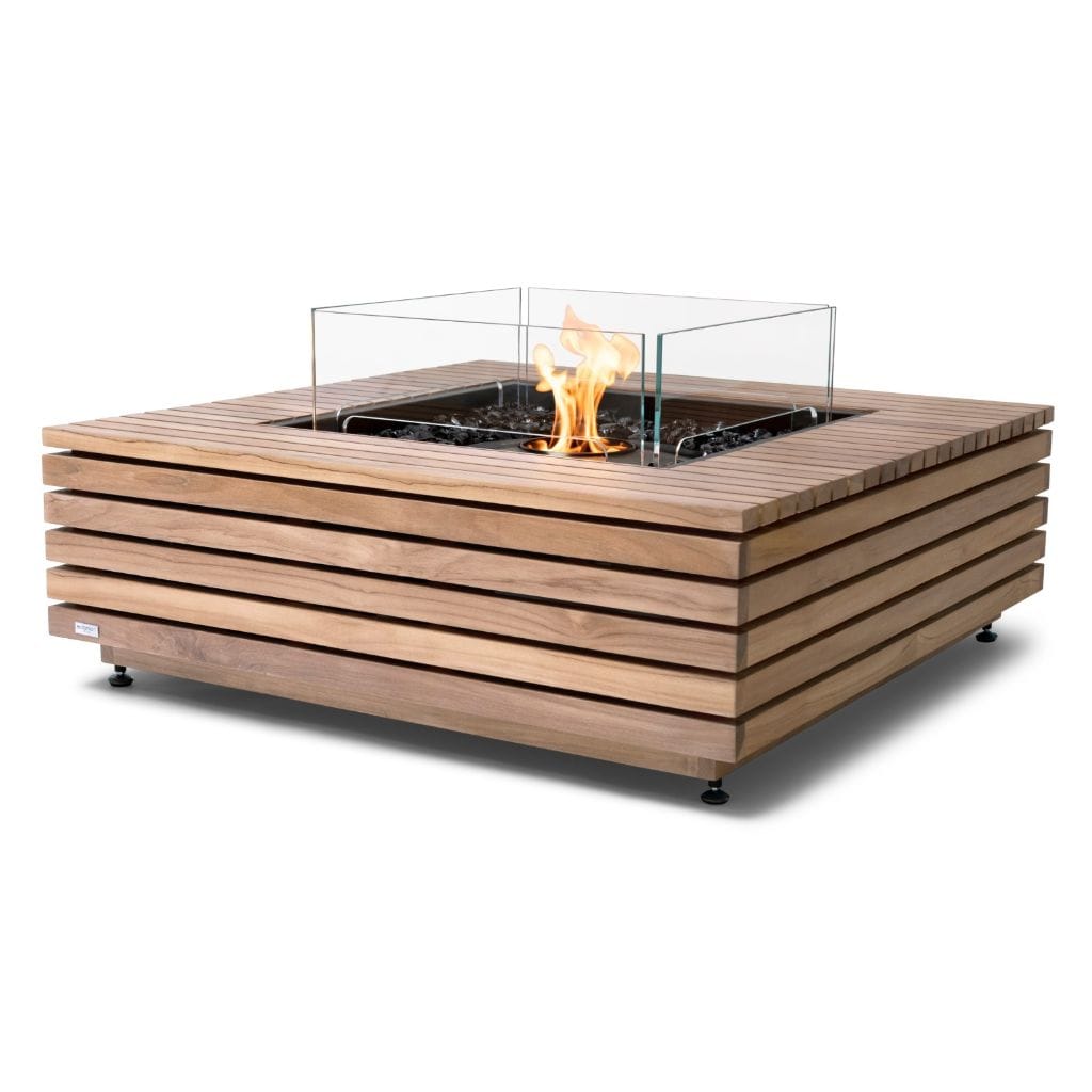 The square fire pit table is available in Ethanol, Natural Gas or Liquid Propane and comes with a toughened glass screen, decorative glass media and the Winter Bag/Summer Cover as standard features.