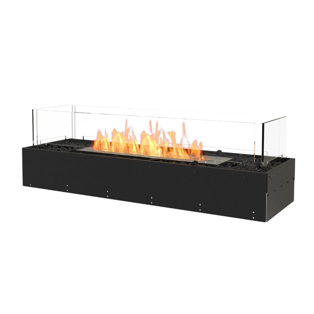 Available in a timeless black finish, Flex Fireboxes come with stainless steel burners and black glass charcoal.