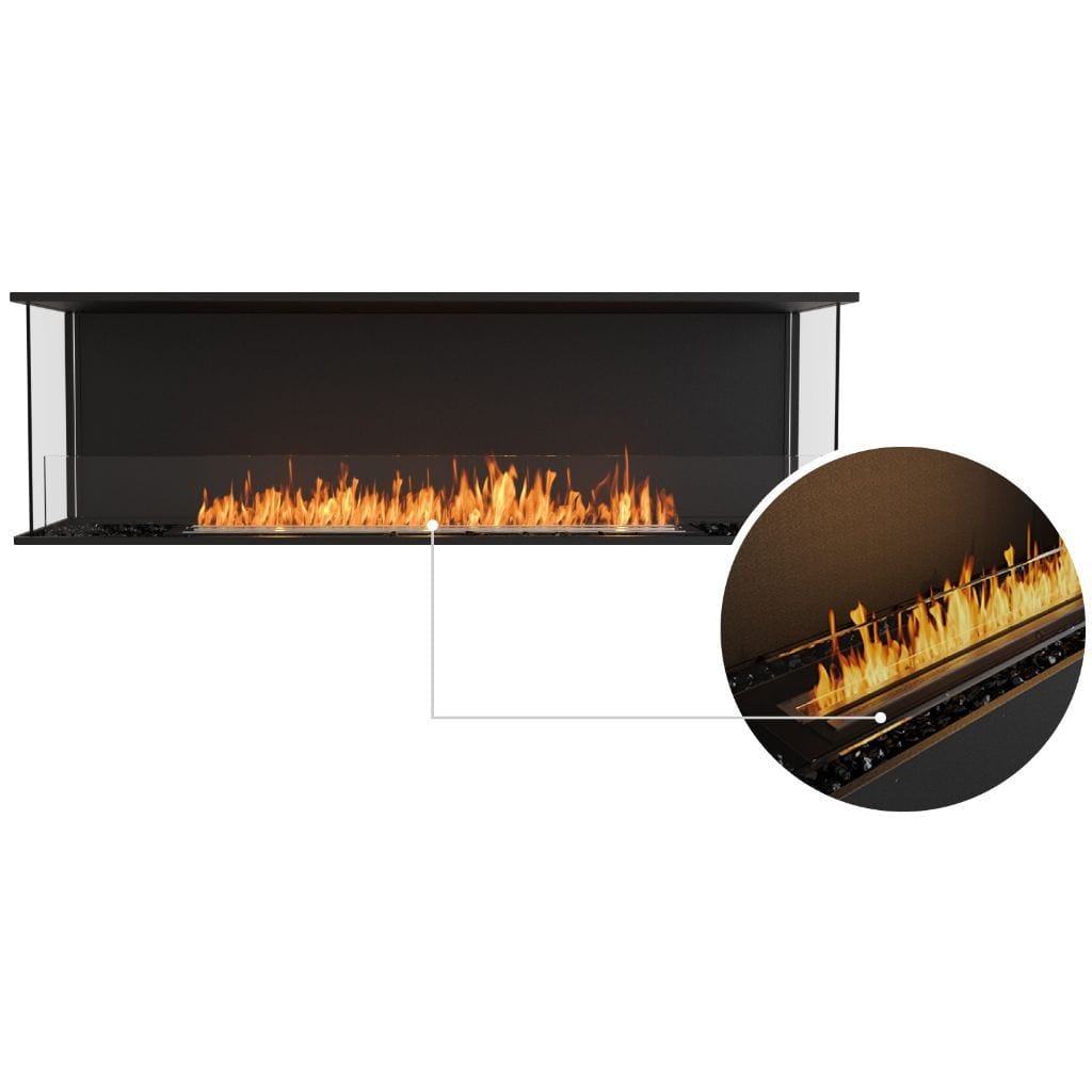 Available in a timeless black finish, Flex Fireboxes come with stainless steel burners and black glass charcoal.