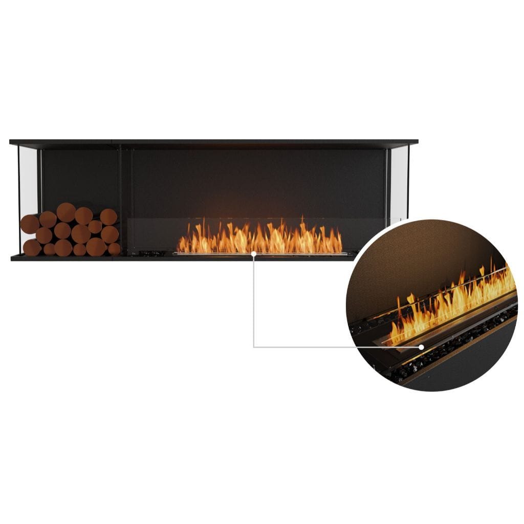 Available in a timeless black finish, Flex Fireboxes come with stainless steel burners and black glass charcoal.