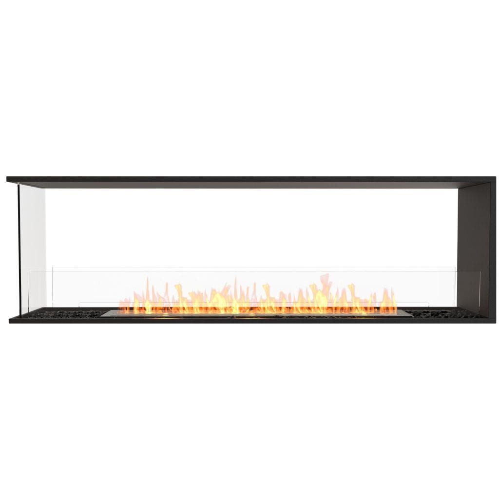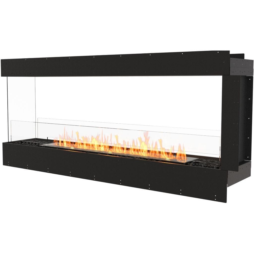Available in a timeless black finish, Flex Fireboxes come with stainless steel burners and black glass charcoal.