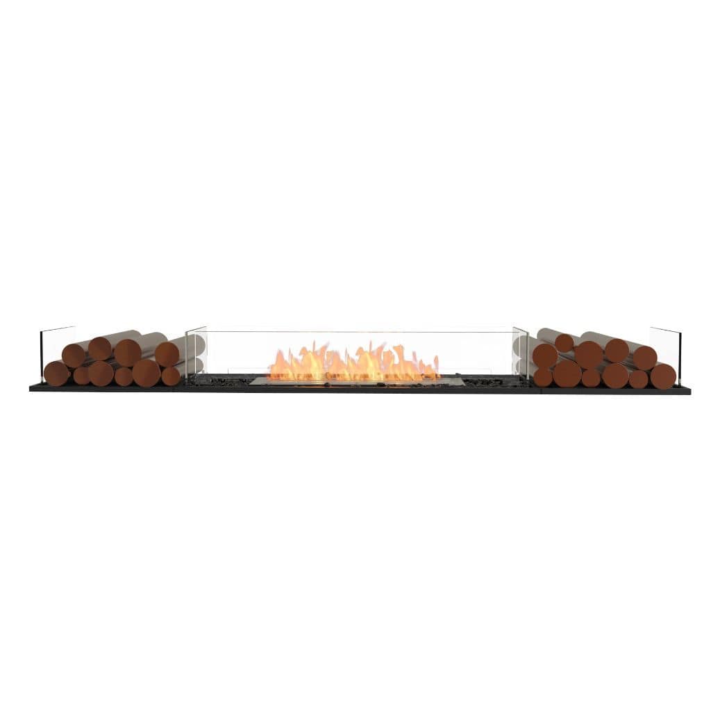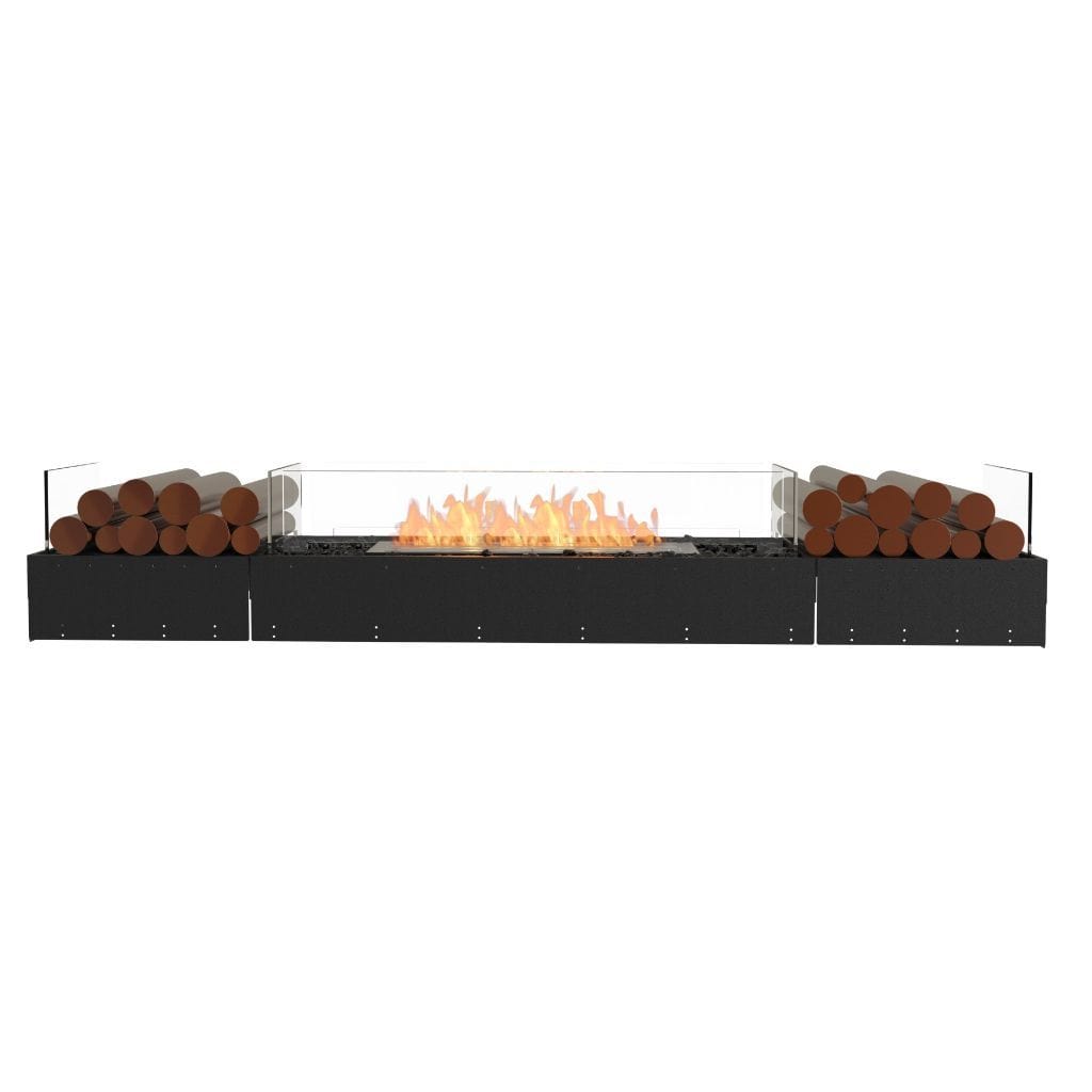Available in a timeless black finish, Flex Fireboxes come with stainless steel burners and black glass charcoal.