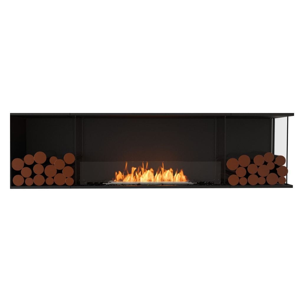 Available in a timeless black finish, Flex Fireboxes come with stainless steel burners and black glass charcoal.