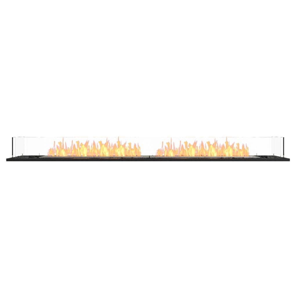 Available in a timeless black finish, Flex Fireboxes come with stainless steel burners and black glass charcoal.