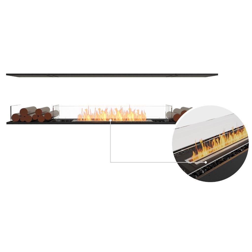 Available in a timeless black finish, Flex Fireboxes come with stainless steel burners and black glass charcoal.
