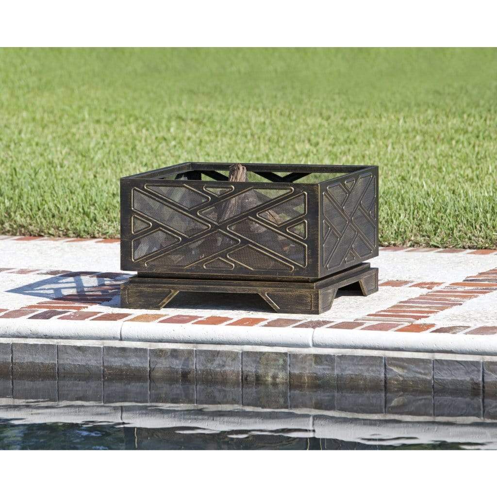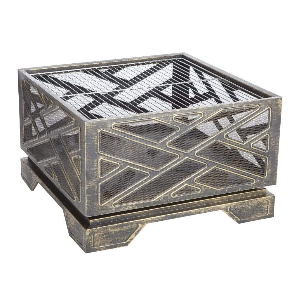 This unique fire pit features a robust 26" x 26" steel and mesh fire bowl with an attractive antique bronze finish and elegant patterned design. The voluminous fire bowl allows for a larger fire while the mesh design ensures a beautiful viewing experience from any angle. This fire pit comes complete with a one-piece mesh spark screen with high-temperature paint. Also included is a screen lift tool and cooking grate.