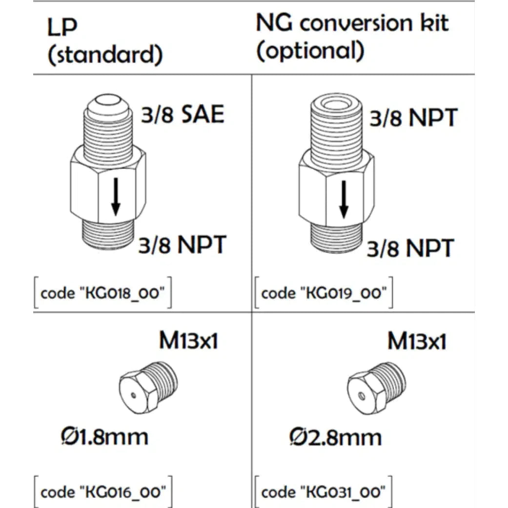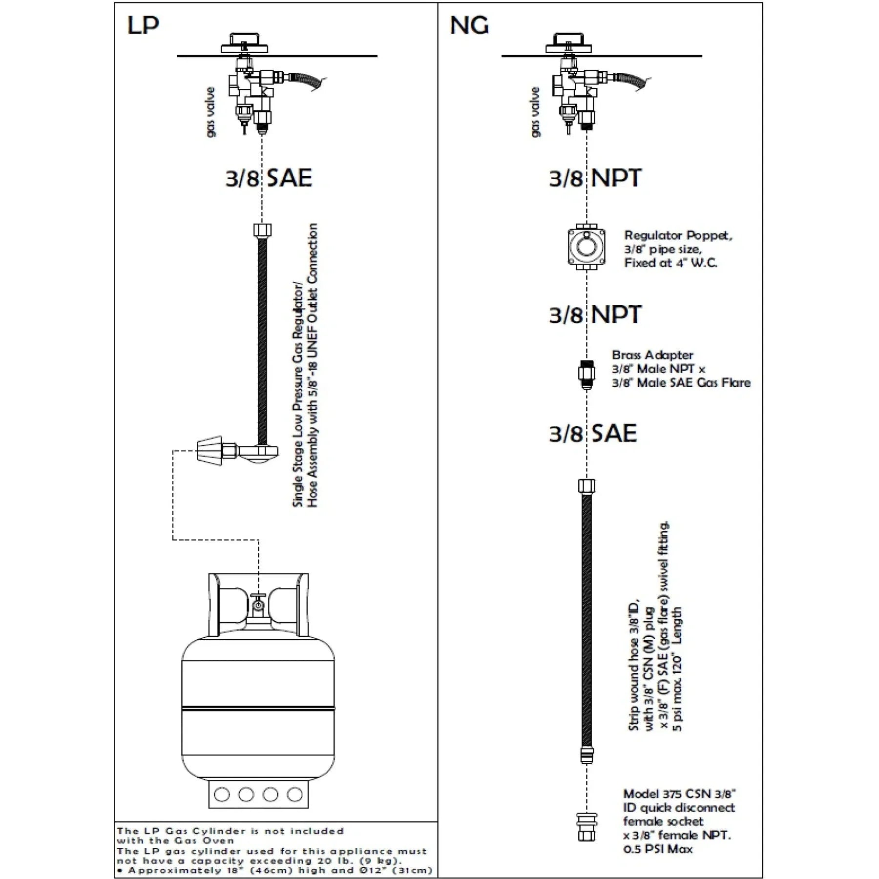 - Note: Two adjustable wrenches (not included) will be needed to convert the appliance from LP to NG.