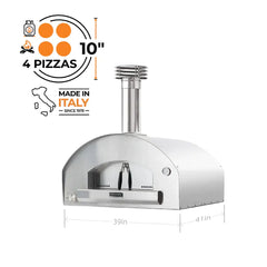 The Roma (Rome), with its vast 900 sq inches of cooking space and a mighty 75,000 BTU burner, can effortlessly cater to large gatherings by accommodating four 10-inch pizzas simultaneously. This oven offers a unique choice between gas and/or wood-burning modes. As an evolution of our cherished Marinara, the Roma hybrid oven embodies the versatility and tradition of authentic Italian outdoor cooking.