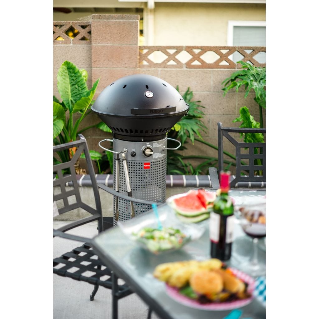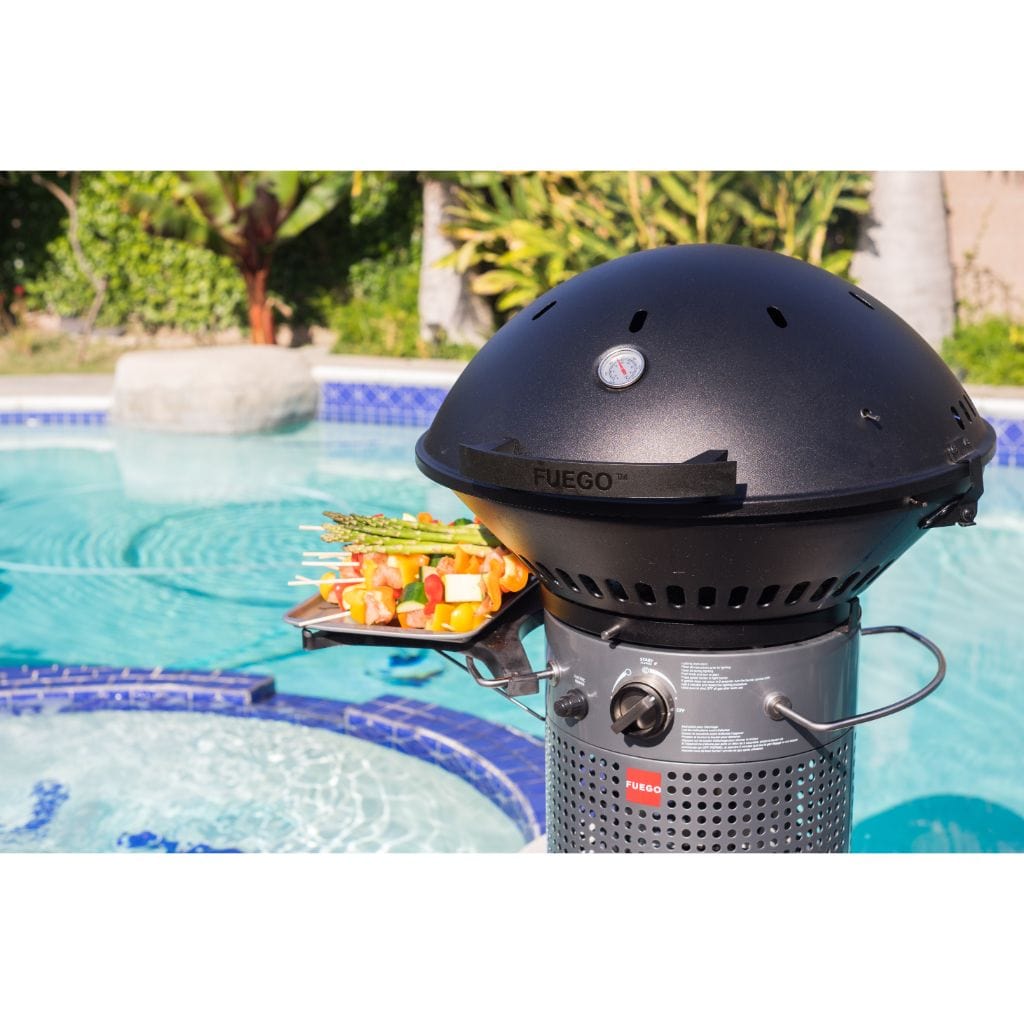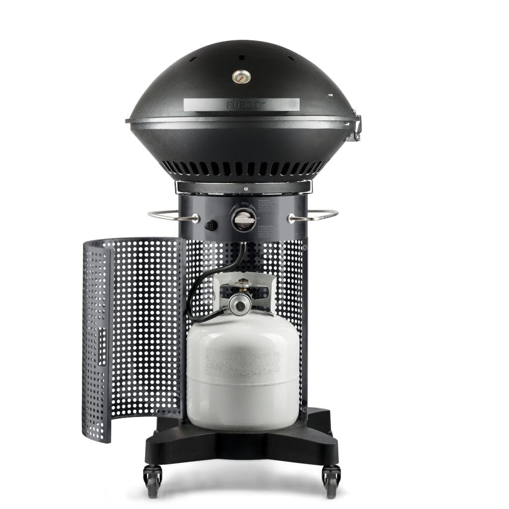 The Fuego Professional Grill is based upon the original award-winning Fuego Element design with added user-friendly features. We started with the base design of the Fuego Element and then thought about how to improve your cooking experience. The answers came from vast amounts of customer feedback and market research - the result is our last model, the Fuego Professional Grill. We began from the ground up, starting with the wheels. We added non-marking industrial casters ensuring a smooth and stable roll while moving your grill around your deck or patio. Moving up, we added a perfect door clasp to keep the front panel closed securely, preventing those annoying rattles you hear on other grills. Next, we tackled the residue removal system by removing an additional 100+ square inches of surface area from the bottom of the fire bowl allowing the cooking debris to drop straight into the residue tray. This new design makes cleanup a breeze. We kept the same,e Dual-Zone burner system but added a 25% boost in BTUs up to 26,500 BTU/hr. This grill gets hot and it gets hot fast. In addition to the BTU boost, we also increased the grill surface area, now offering 415 square inches of primary grilling area with a 110 square inch warming rack for a massive combine grilling area of 525 square inches. Large enough for cooking 20 burgers at once. We did this all while maintaining a small 28" x 28" footprint with the lid open; a 24" x 24" footprint with the lid closed. Speaking of the lid, we added hood hinges at a 45 Degree angle, so no more reaching over the hot fire like most gas grills. The hood also acts nicely as a wind break for those open-lid cooking days. Not to mention the 9" grilling height below the lid is perfect for a beer can chicken or three!!! New as of May 2020, we have upgraded the lid to porcelain enamel to eliminate the paint bubbling and peeling issue. The Fuego Professional Grill is possibly the most versatile grill on the market.