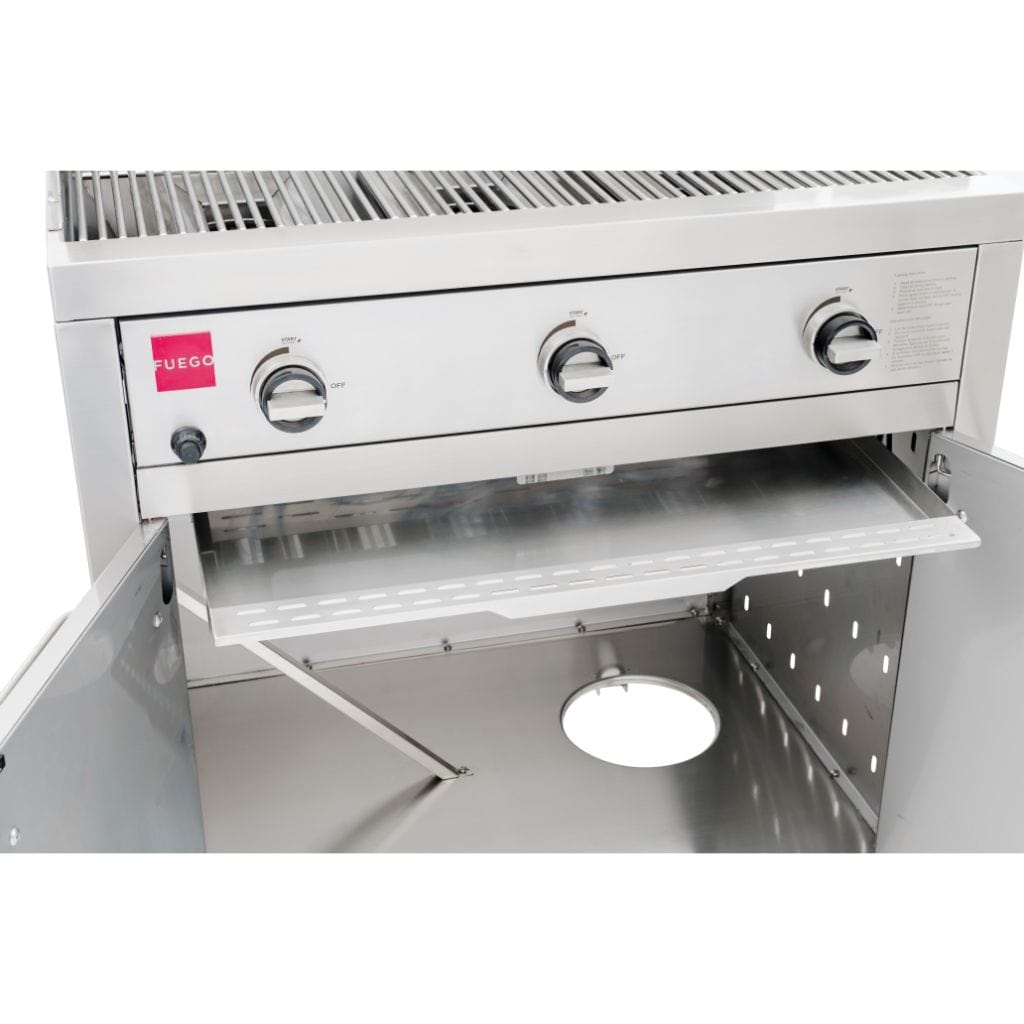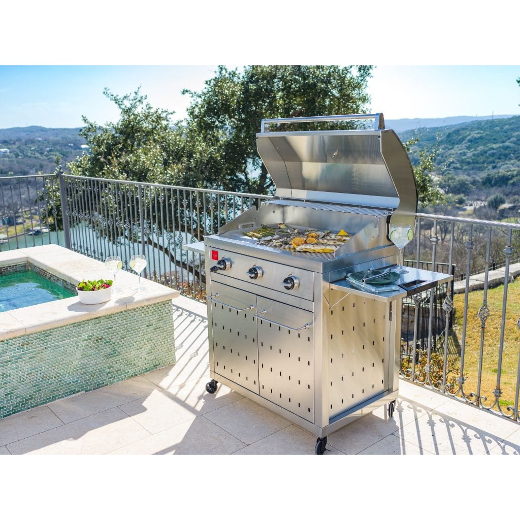 New for 2021, we are excited to present our new Fuego all 304 Stainless Steel gas grill. We set out to design a grill that eliminated all of the bulky features seen on most gas grills. We started with the shelves & recessed them into the side panels creating a more compact footprint & more stylish design. Next, we tackled the front panel. Due to our unique construction, we eliminated the bulbous front end & developed a sleek flat front panel design. True to Fuego form, our performance specs Remain impressive heating to 500F in just 5 minutes and up to 650F in 10 Min. The grill gets hot! This eliminates several Min of preheat time & produces amazing sear marks. Its wide temperature control ranges from 250F-650f allowing your true chef skills to shine while preparing a wide variety of dishes sure to impress your guests.