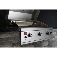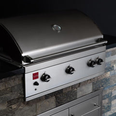 Sleek Face Our built-in lineup offers a clean line face unlike any other built-in grill on the market. Perfect for modern outdoor kitchens. The grill can be installed by overlapping the finished stone or having the stone butt up to the control panel sides.