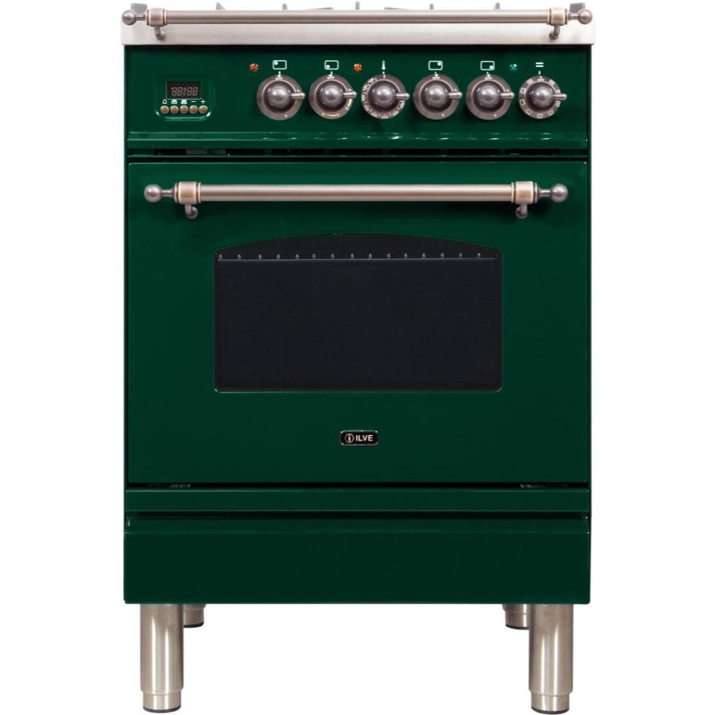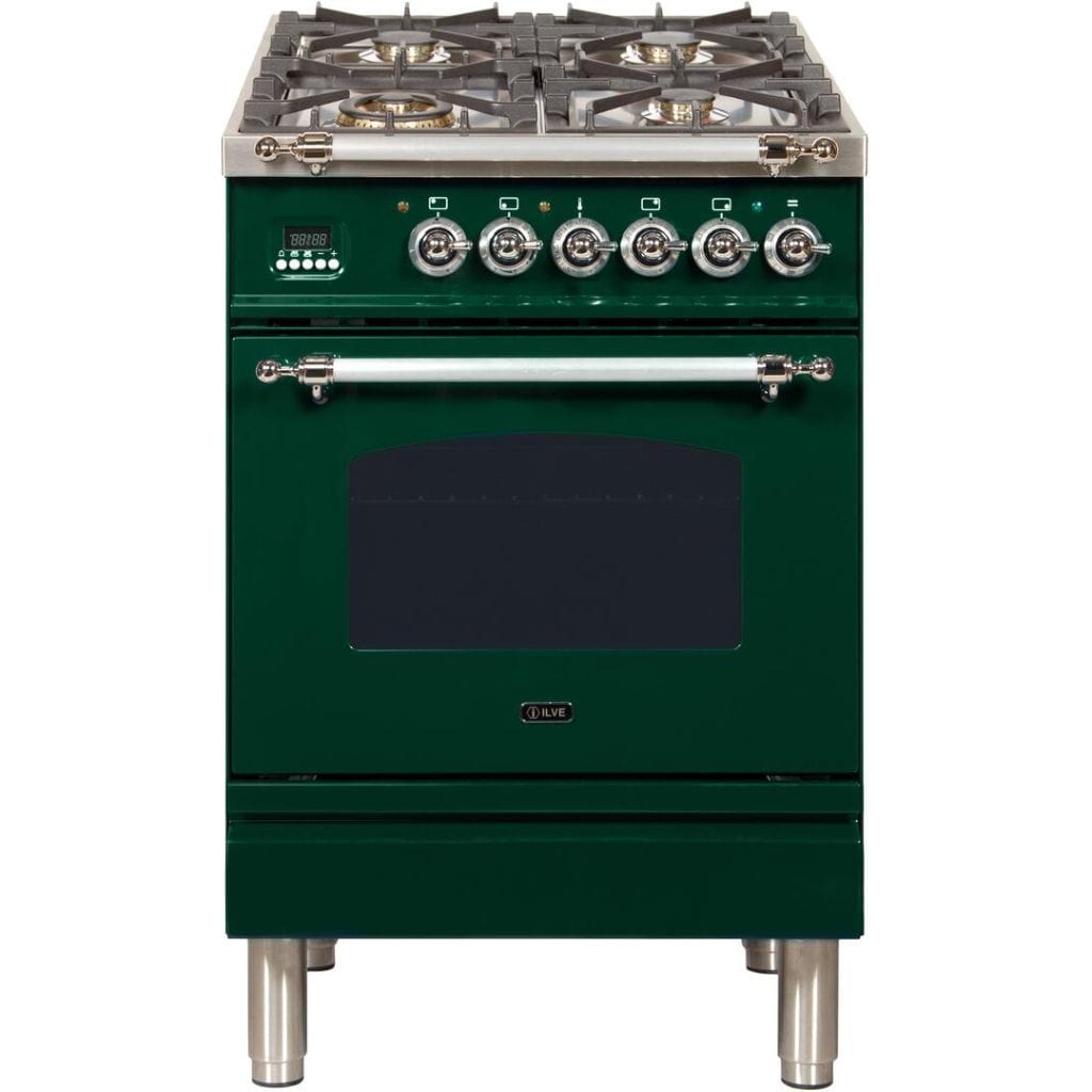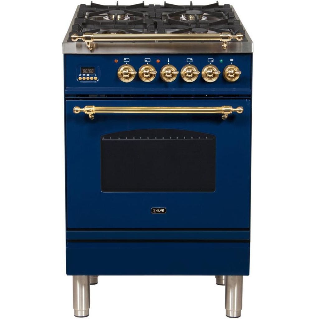 Nostalgie Series 24 Inch Freestanding Dual Fuel Range with, 4 Sealed Burners, 2.44 cu. ft. Total Oven Capacity, Convection Oven, Continuous Grates, Viewing Window, Storage Drawer, True European Convection, Handcrafted from Italy, High-End Workmanship, Dual Function Triple Ring Burner, Oven: Defrost Function, Gas Conversion Kit Included with Trim