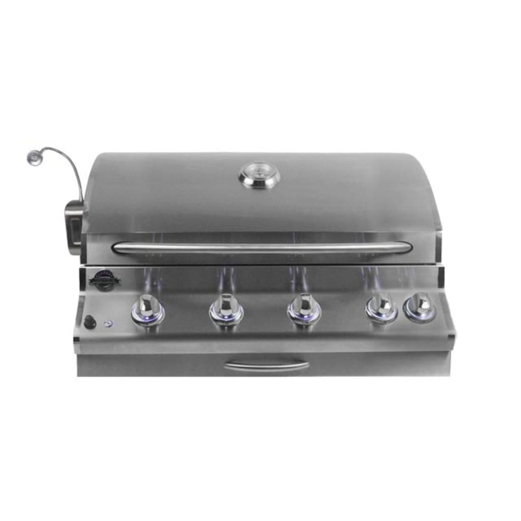 SUPREME series four burner built in features four stainless steel burners at 10,500 BTU per burner, stainless steel double wall hood and a 15,000 BTU ceramic infrared rear rotisserie burner. Heavy duty rotisserie kit and built in cover are included. This grill offers high quality construction with premium features.