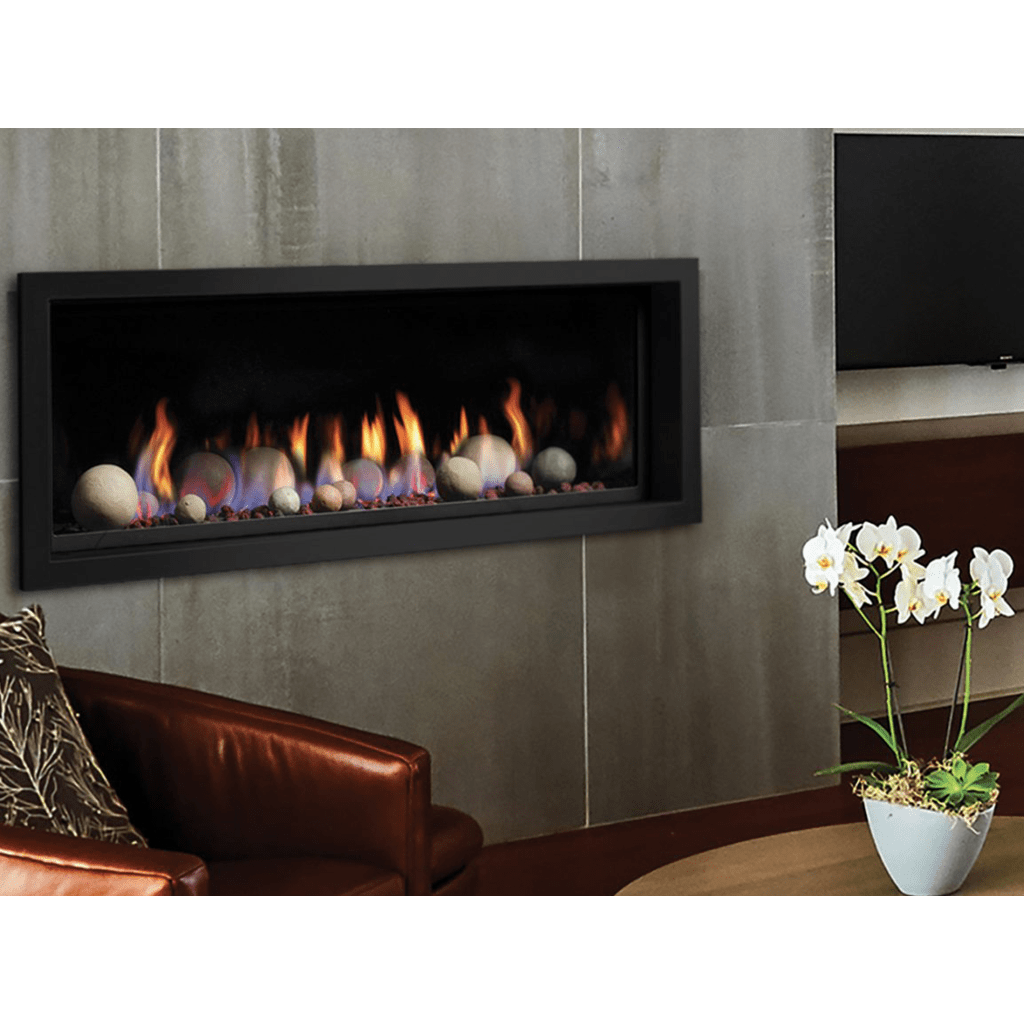 Kingsman ZCVRB47 47-Inch Zero Clearance Linear Direct Vent Gas Fireplace with Fire Glass offers an impressive direct vent gas fireplace option for your home. Featuring heavy-duty steel construction, this classic design offers durability to withstand the test of your time. With its premium burner system, realistic flame pattern, and impressive fire glass, this appliance replicates the design of a traditional wood fireplace while incorporating a contemporary styling also. With its safe and authorized design, this unit is often installed during a bedroom, bed-sitting room, or perhaps during a mobile home.