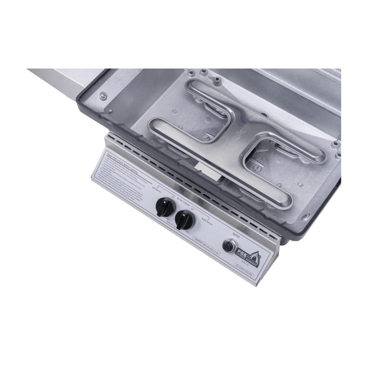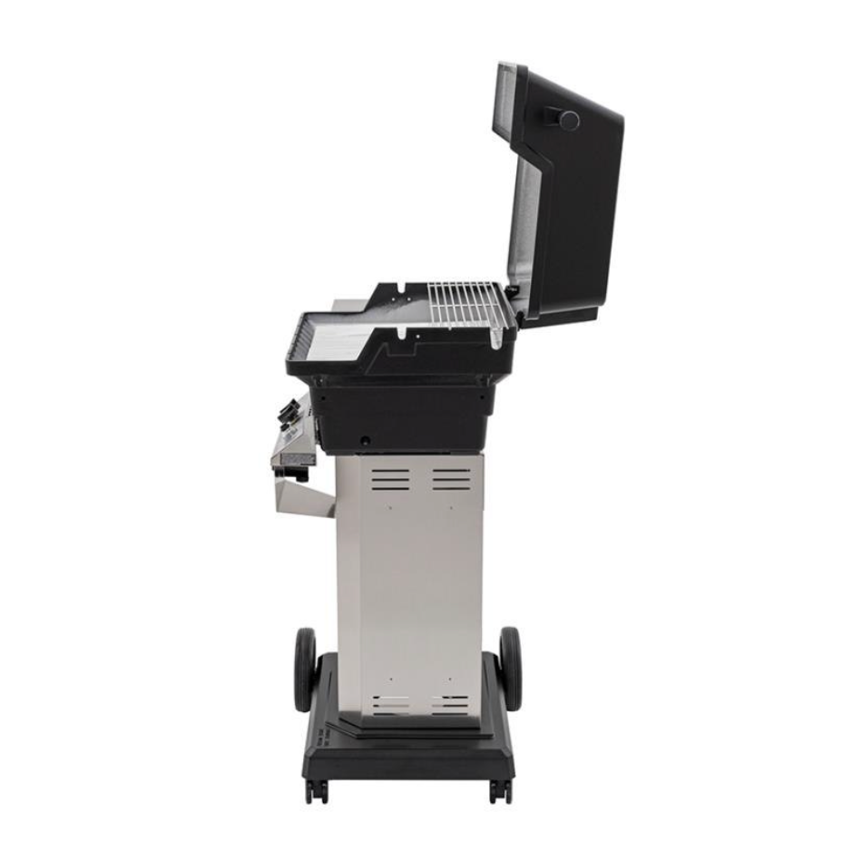 The "T" Series offers the ultimate in flexibility and durability with the widest variety of mounting options in the grill industry. Hight output stainless steel burners for fast heat and controlled timperatures. T30 is 30,000 btu/hr input, "Sure Start" electronic ignition system, 330 sq. in. of cooking area, stainless steel cooking grids, 121 sq. in. of secondary warming rack, stainless steel dual "H" style burner, durable permanent mold aluminum castings, and ceramic "MOON ROK" for even heat distribution. Includes right side stainless steel side shelf. Made in the USA. (Requires mounting option) includes 60 minute PGS Fuel Stop®