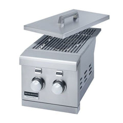 The 12-inch double side burner slides into your outdoor kitchen space to gives you the capabilities of a traditional stovetop. Two knobs allow you to control the temperature of each burner individually, making it perfect for creating side dishes, preparing sauces, and sautéing veggies while you grill the main course. The double-inch side burner reaches up to 24,000 BTUs between both burners. If installing the 12-inch double side burner into combustible material, you must first install an insulated sleeve.