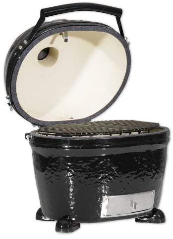 The Primo Oval Junior charcoal smoker grill is the ultimate outdoor ceramic cooker, featuring 210 square inches of standard cooking surface (and up to 360 square inches with optional rack extensions). It also offers a cast iron chimney cap, easy-to-read thermometer, reversible cooking grates, stainless steel lower vent door. And Primo's unique oval design allows for greater flexibility and versatility. You'll be able to cook using both direct and indirect methods at the same time.