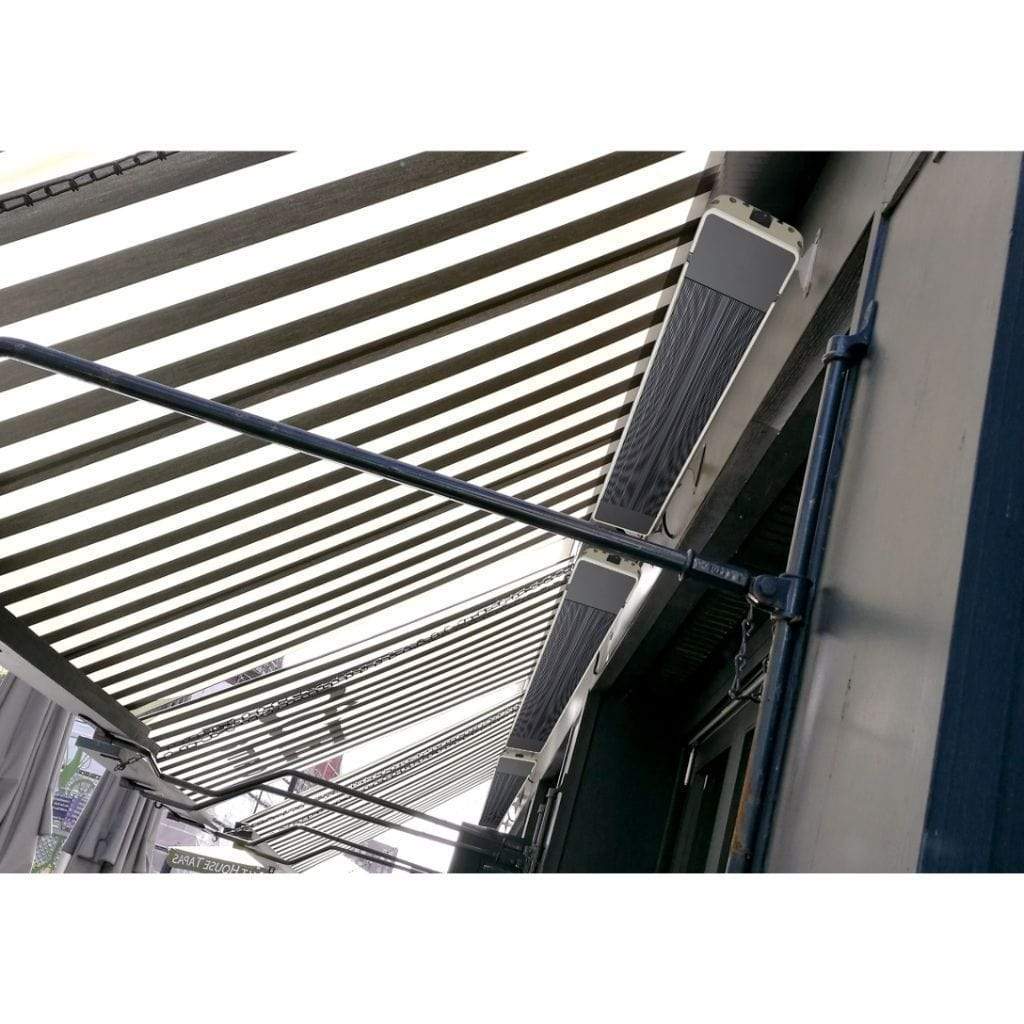 RADtec X Series - Wall/Ceiling mounted infrared radiant heat panel. IPX5 water resistance rating - built to last outdoors and resist the elements, remote-controlled, fully electric, and Zero Light while operating to blend seamlessly with surrounding décor. The operational lifespan of 20,000 hours and backed with a 2 Year Warranty. Remote control and mounting kit materials are included.